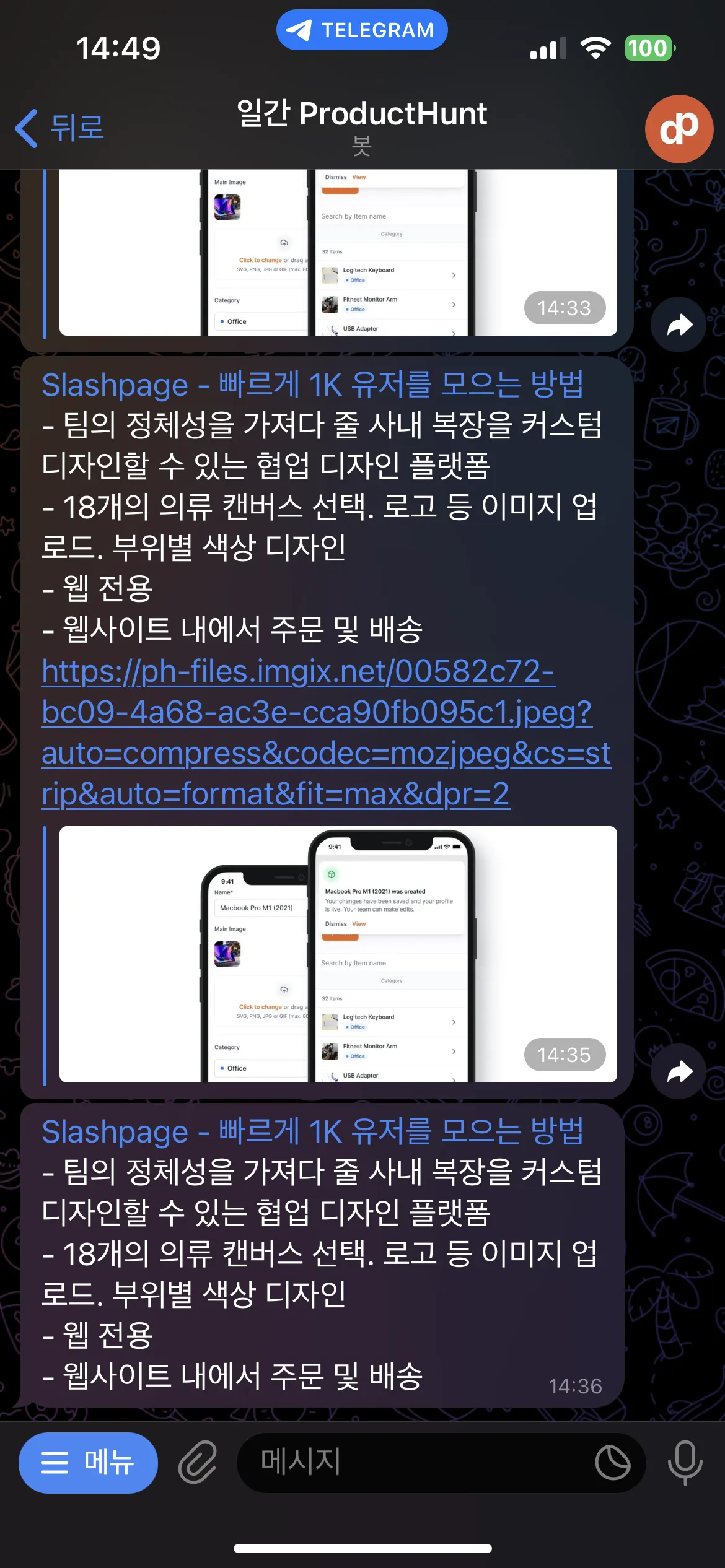 안녕하세요, 일간 ProductHunt입니다. 이전에 일간 ProductHunt를 재단장한다고 해서 슬랙과 노션의 연동 방식을 변경했는데요, 잘되는 분들도 있지만 잘 안되는 분들도 있어서 다시 이전 방식과 비슷한 방식으로 돌릴 예정입니다. 자세한 내용은 다음과 같습니다. 슬랙 이전 방식처럼 특정 채널을 선택해서 연동합니다. 이메일 정보를 받지 않습니다. 웹훅 URL을 통해서 콘텐츠를 전달합니다. 노션 이메일 정보를 받지 않습니다. 템플릿 복제 시 기존 전송 정보도 전부 포함된 채로 복제됩니다. 위처럼 외부 API를 통합하는 기능의 경우는 해당 앱의 권한 등을 다시 초기화해야하는 이슈가 있다 보니 부득이하게 기존 정보를 지우고 다시 연동 정보를 저장해야 할 것 같습니다. 불편을 드리게 되어 죄송합니다. 슬랙과 노션은 다음 버튼들을 통해 연동하시면 됩니다. 감사합니다.