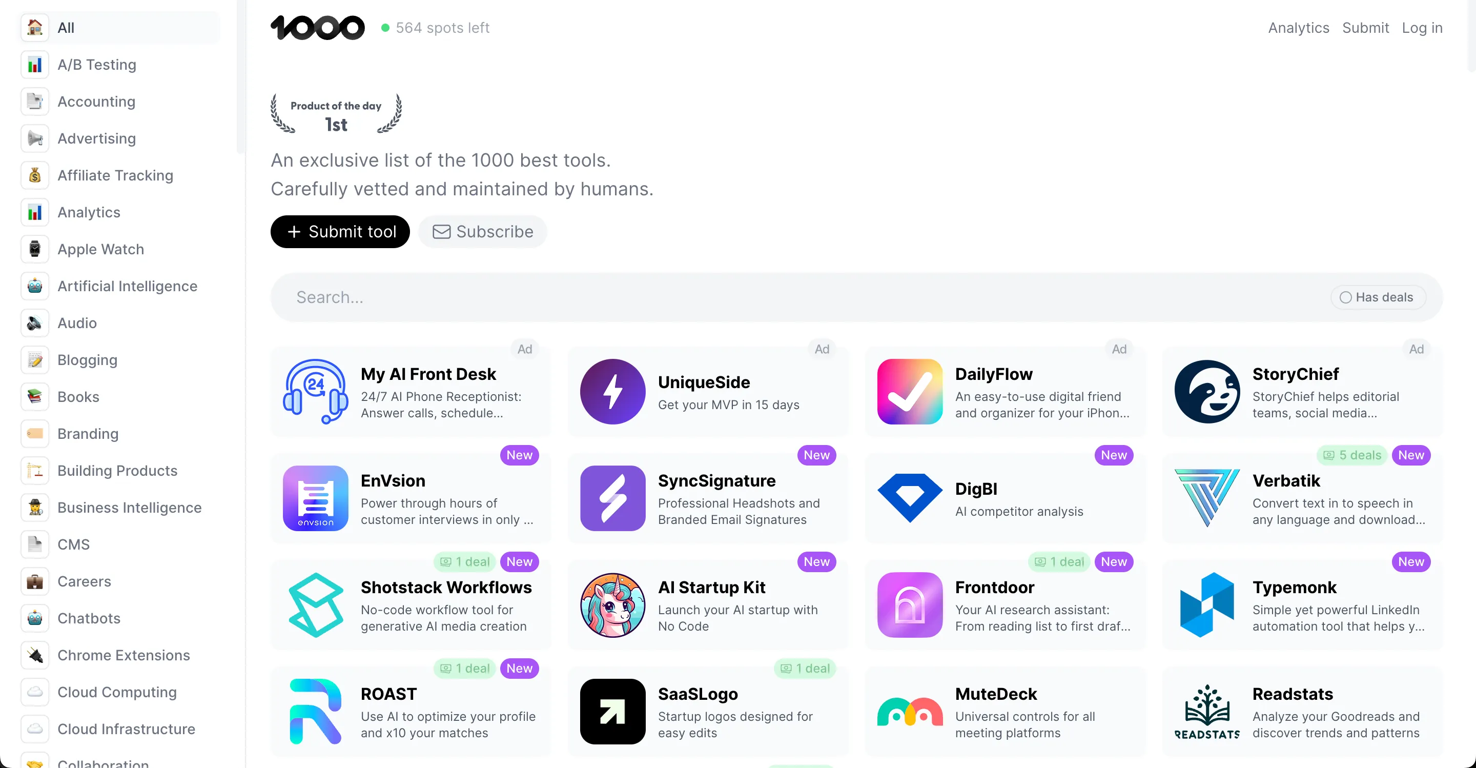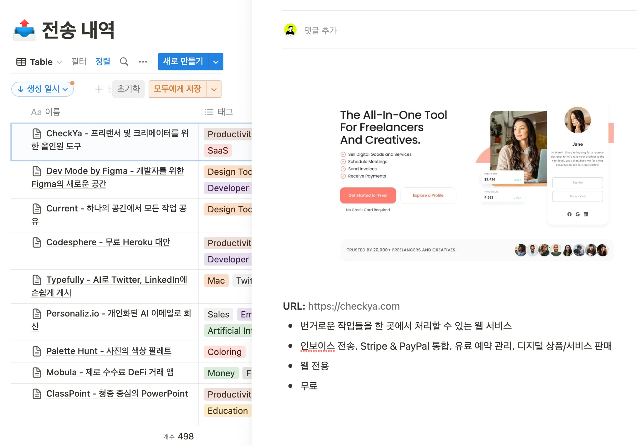 오랜만입니다! 벌써 한 달이 지났군요. 이번 달은 상당히 무더웠습니다. 저는 피부가 많이 타버렸네요. 😂 월간 ProductHunt도 이제 반 년이 지나 6번째를 맞이했습니다. 한 달에 한 번뿐인데도 무슨 주제를 해야할 지 항상 고민이 되네요. ㅎㅎ 이번 달 주제는 반 년간 소개했던 모든 제품들 중에서 제가 실제로 유용하게 사용하고 있는 제품들을 소개해 볼까합니다. 지금까지 소개한 700개 이상의 제품들 중에서 추렸습니다. 1. floo.app floo는 이미지 포맷을 다른 포맷으로 빠르게 변환시켜 주는 무료 웹 서비스입니다. WebAssembly 기반으로 만들어졌다고 하는데요, 무제한, 무료로 사용할 수 있고 광고도 달려있지 않으며, 직관적인 ui 덕분에 필요할 때마다 유용하게 사용하고 있답니다. 😝 svg, heif, heic, avif, webp, jpg, png, pdf를 jpeg, png, webp, avif로 변환할 수 있습니다. 2. Internxt Internxt가 제공하는 무료 임시 이메일 기능은 이메일 가입 관련 테스트를 하거나 익명으로 특정 서비스에 가입이 필요할 때 유용하게 사용될 수 있습니다. 저같은 경우는 일간 ProductHunt에 소개할 제품을 테스트해보기 위해 주로 사용합니다. 3. DevGPT 개발자를 위한 ChatGPT입니다. ChatGPT와 UI는 거의 유사하지만 코드 생성이나 디버깅 등 개발자 친화적인 기능들이 추가되어 있습니다. 저는 초창기 ChatGPT가 트래픽이 몰려 느려졌을 때 대신 유용하게 사용했습니다. 무료로도 ChatGPT처럼 무제한 채팅 가능하기 때문에 관심있으시면 써보시기 바랍니다. 4. Tailkits TailwindCSS로 개발하는 저에게 많은 영감을 주었던 웹 서비스입니다. Tailwind와 연관된 모든 리소스를 모아놓은 곳인데요, 템플릿, 디자인, 컴포넌트 등을 무료 혹은 유료로 제공하는 제품들을 한데 모아 소개하고 있습니다. 5. Storytale 무료로 사용 가능한 이쁜 수천 개의 3D 애셋과 일러스트레이션을 제공해주는 웹 서비스입니다.