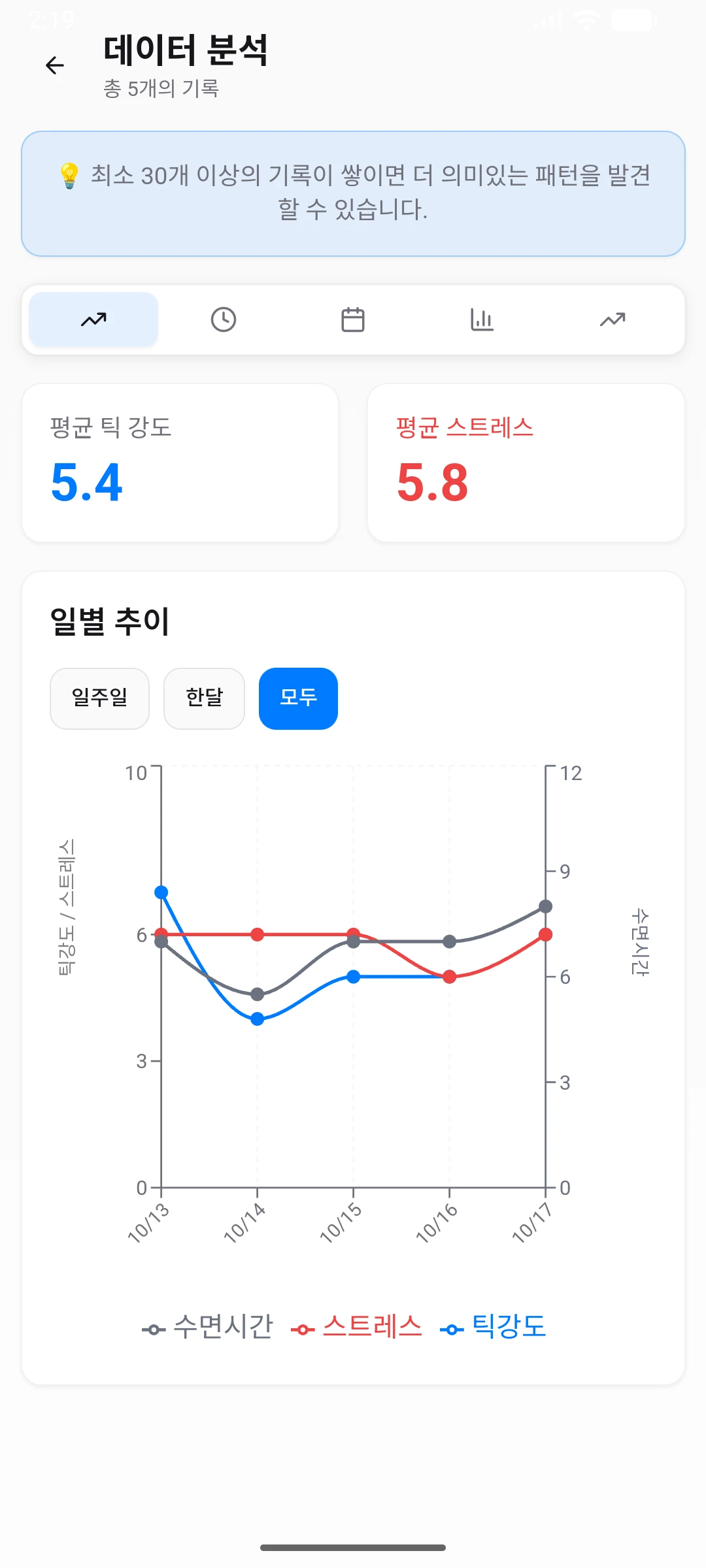 이 앱은 제가 5년 넘게 제 틱을 직접 기록하며 얻은 경험과 깨달음을 녹여낸 결과물입니다.