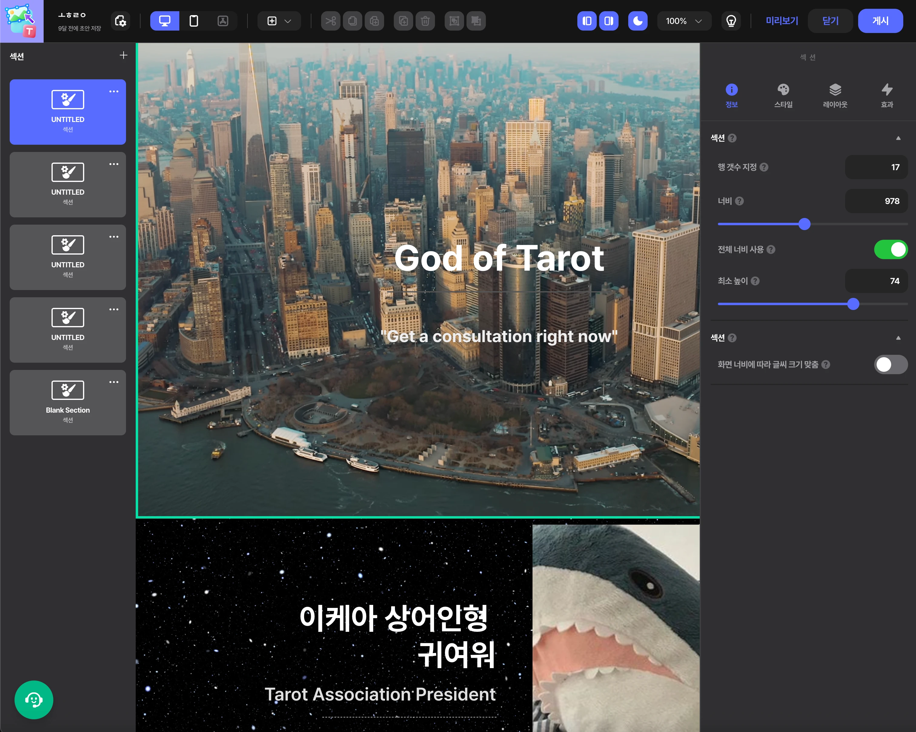 마우스 오버시 프리뷰 보여주는 섹션 템플릿