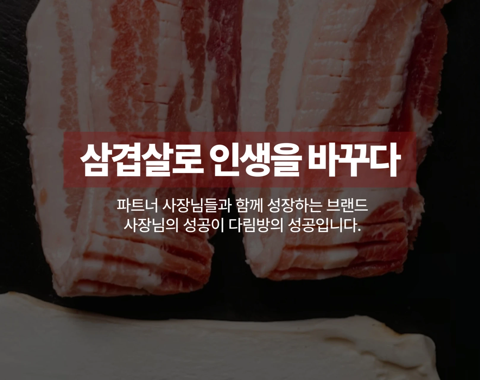 다림방 배달삼겹은 배달 샵인샵으로 개점비/교육비/로열티 등의 별도 비용이 없습니다. 사장님은 그냥 바로 판매하시고 매출만 가져가시면 됩니다.