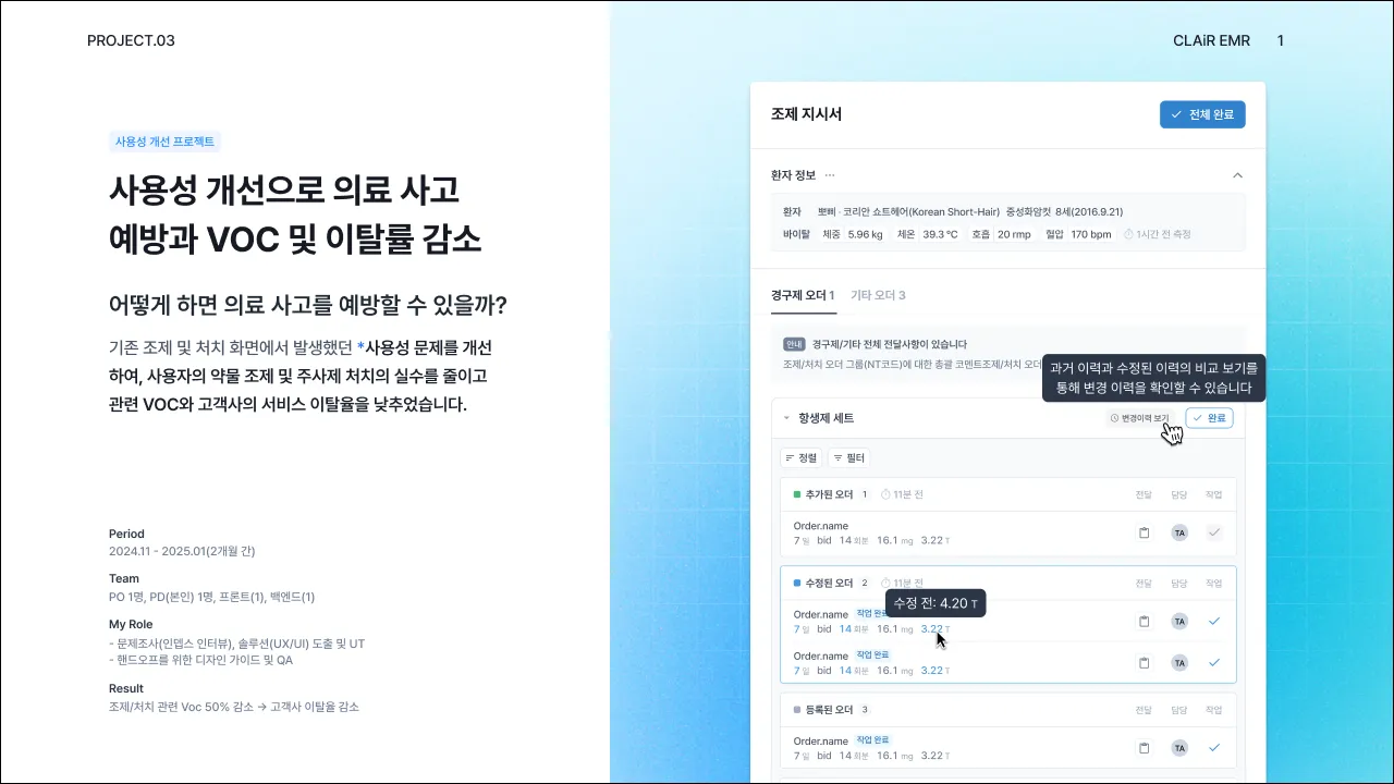 CLAiR EMR: 사용성 개선을 통한 의료사고 및 고객 이탈 감소