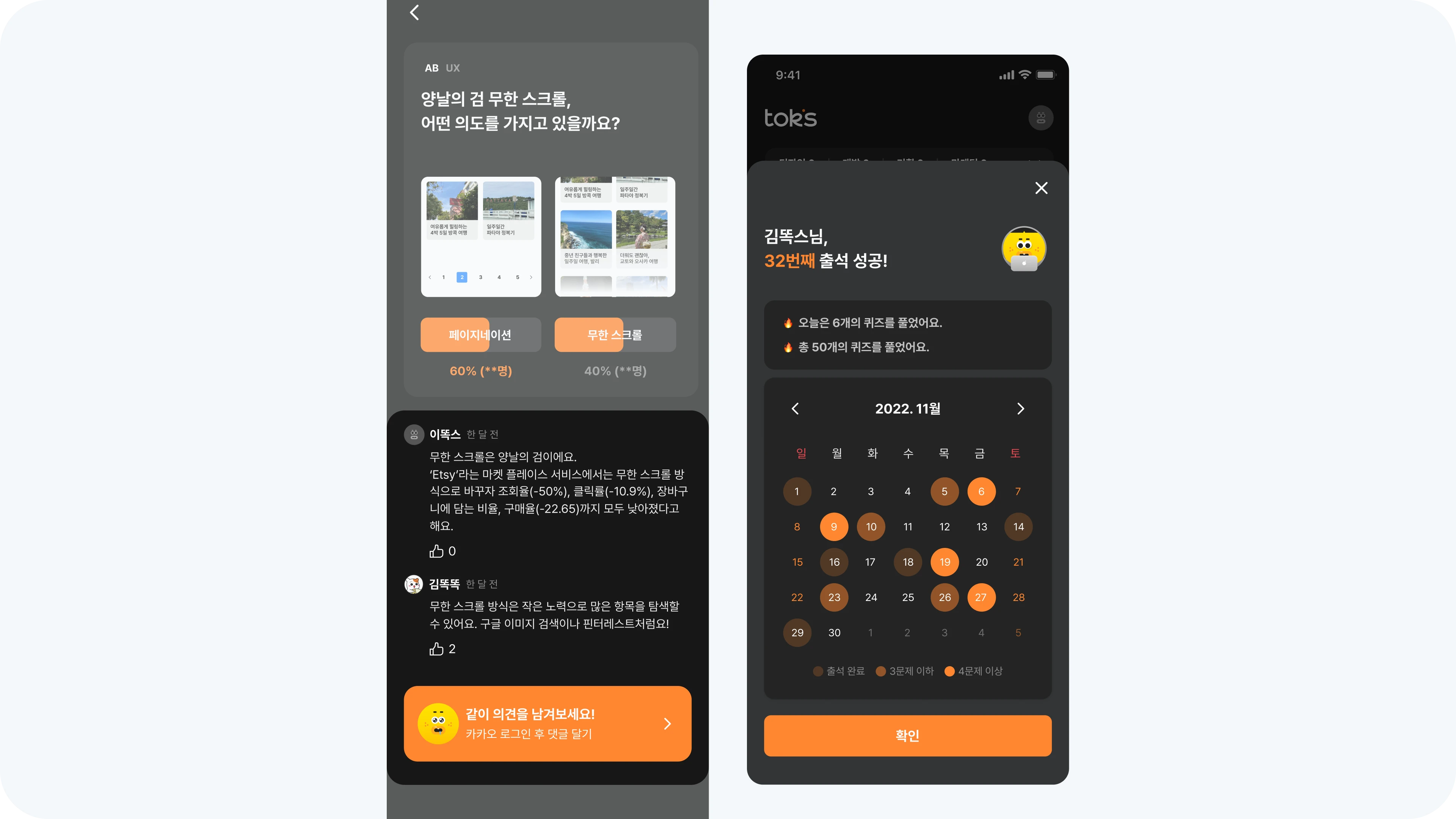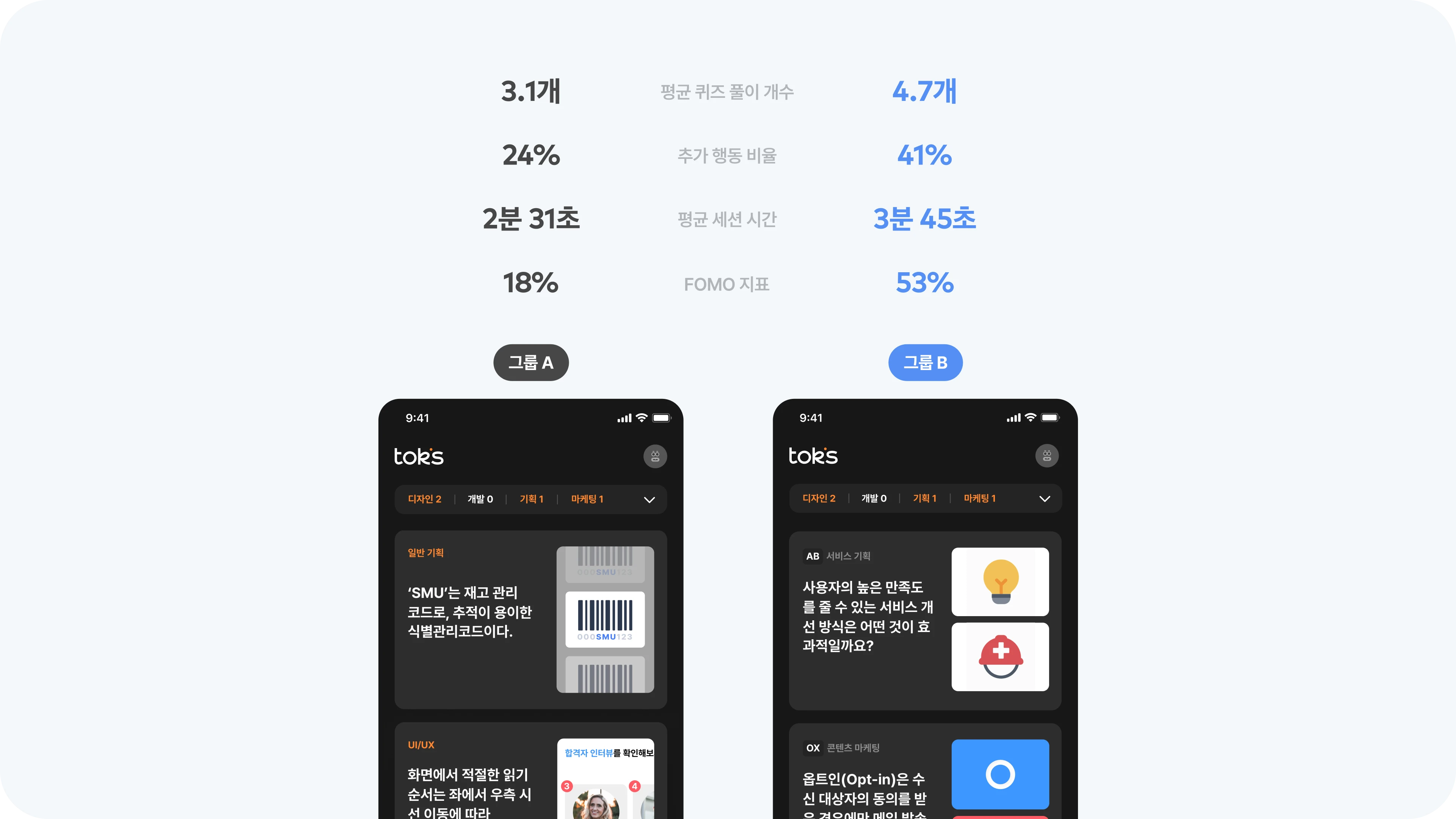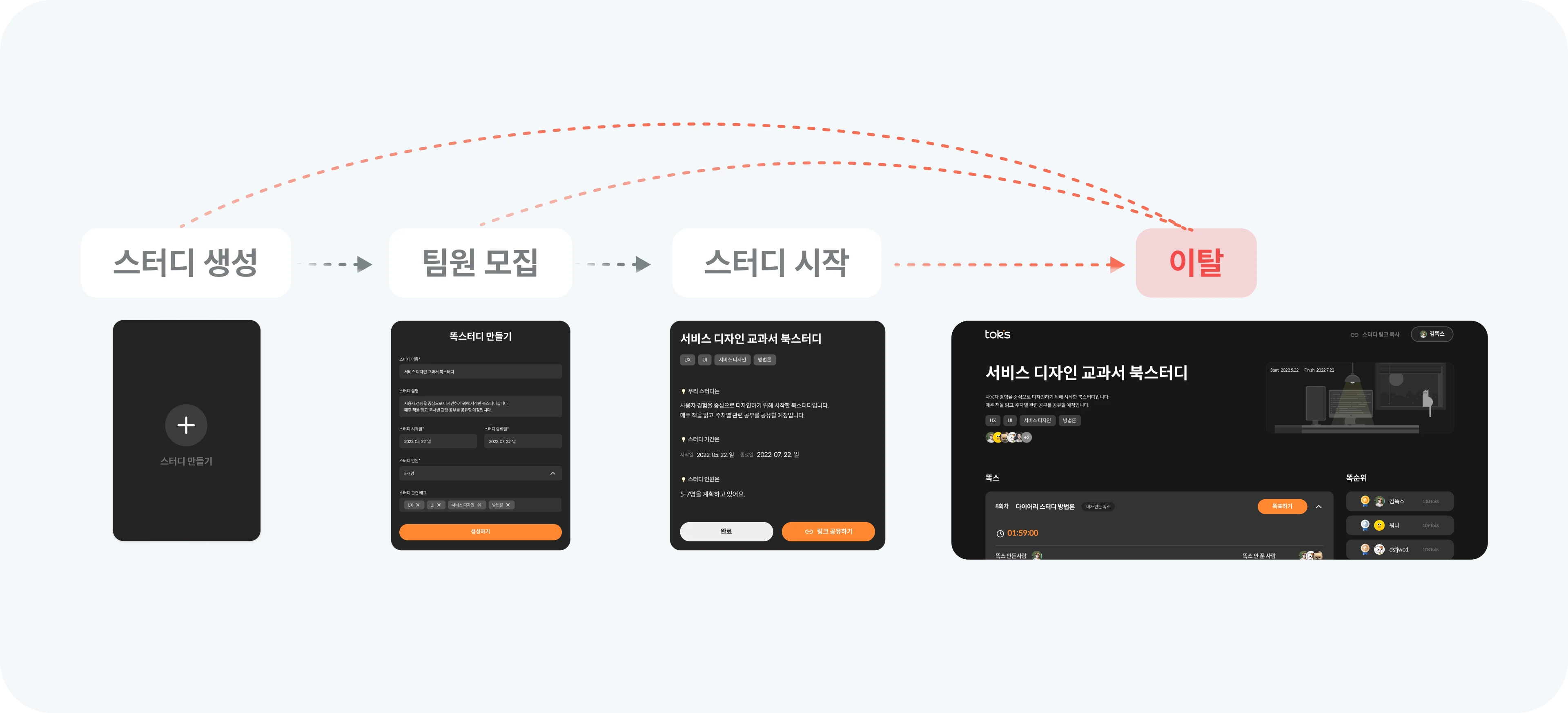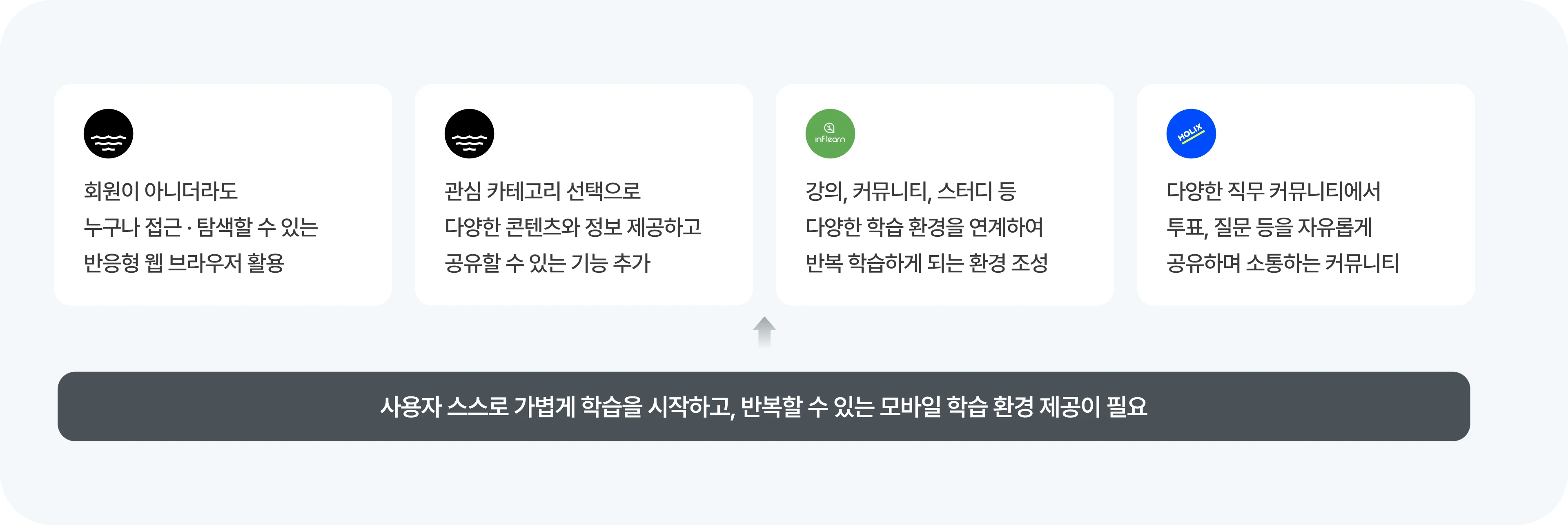 첫 출시 목표와 다르게 유저가 기대하는 바가 달랐음을 인지하게 되었고, 서비스를 새로 엎어야 하는 것에 고민이 들었습니다. 리소스가 분명 많이 드는 작업일 것이고, 초반 예상과 다르게 서비스 방향성도 바뀌는 것이기에 팀원들의 부담도 우려가 되었습니다. 하지만 모바일로 적용해보고, 좀더 쉽고 간단한 학습 서비스로 만들어본다면 분명 우리의 목표였던 '즐거운 스터디 경험'을 더 확실하게 전달할 수 있을 거라고 생각했습니다. 이 부분에 대해 팀원들도 걱정은 많았지만, 작은 기능부터 하나씩, 조금씩 만들어가자는 합의 하에 진행하게 되었습니다. 이는 곧 우리의 성과 지표인 가입 유저를 늘리는 것과 재방문율을 높이는 성과를 만들어낼 수 있을 거라 기대할 수 있는 개선이라고 기대하게 되었씁니다.