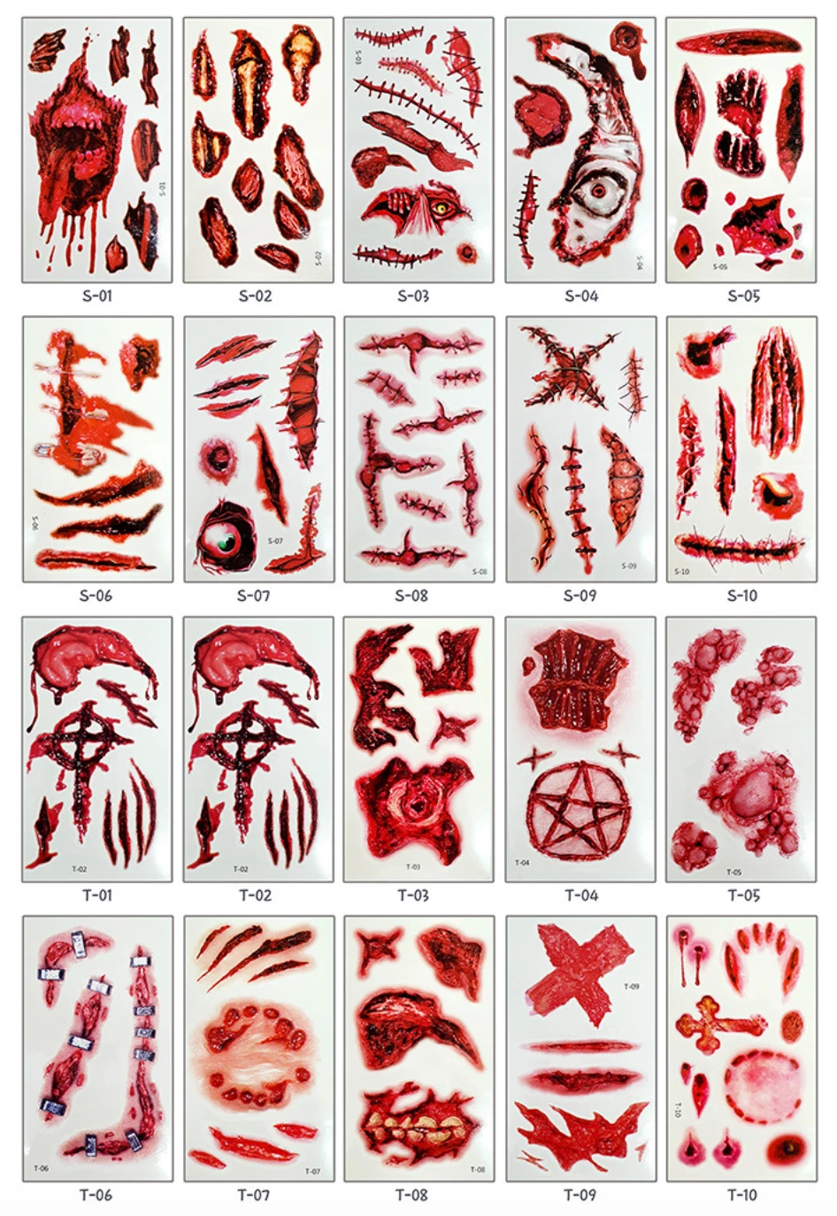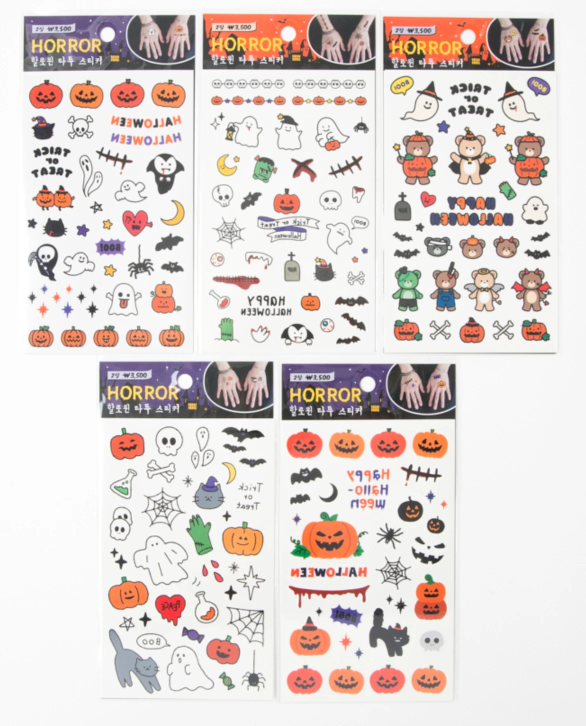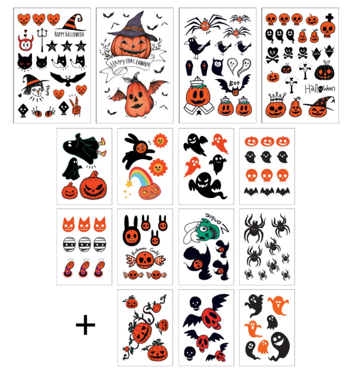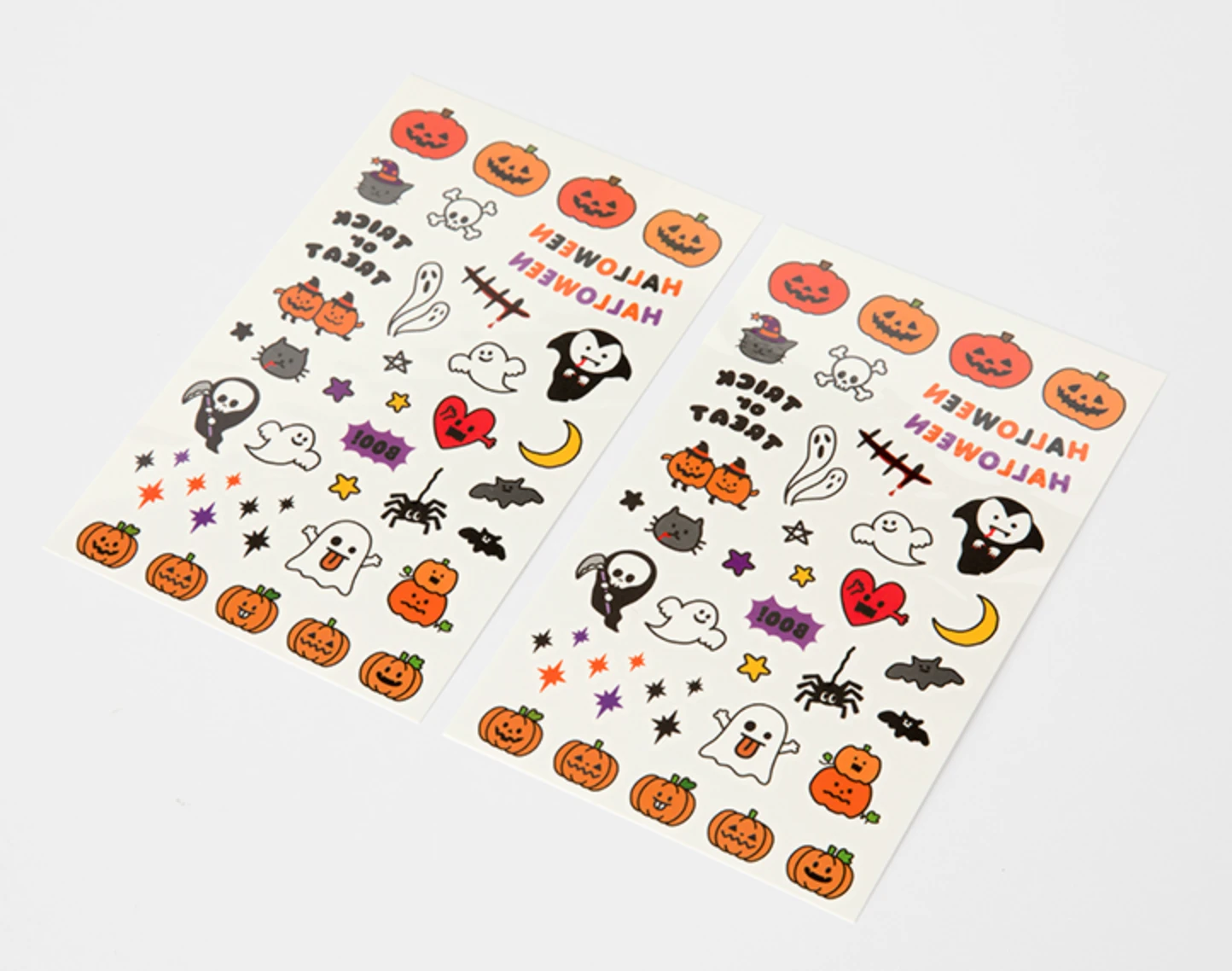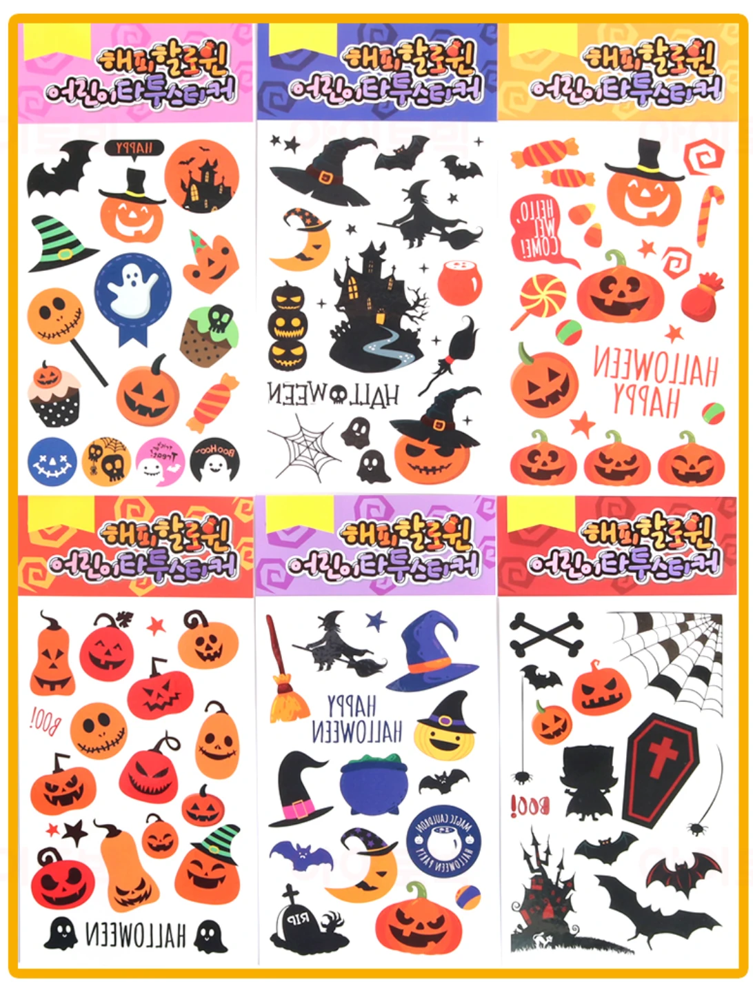 가위로 자른 후, 피부에 붙여 할로윈 분위기를 낼 수 있는 타투 스티커입니다.