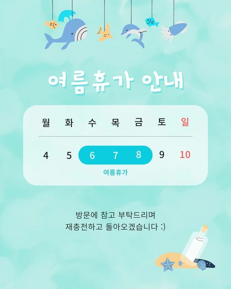 여름휴가 시즌에는 매장 운영 일정 안내가 중요해집니다.