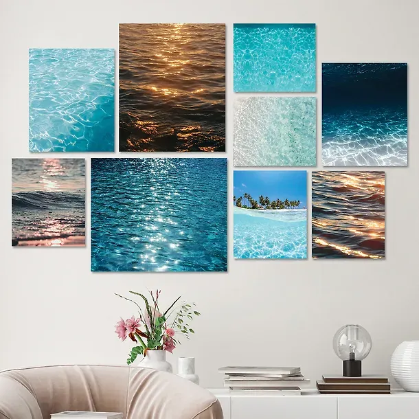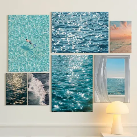 시원한 느낌을 주는 여름 감성 디자인 상품, 여름 시즌 매장 데코 상품 등을 만들어 볼 수 있습니다.