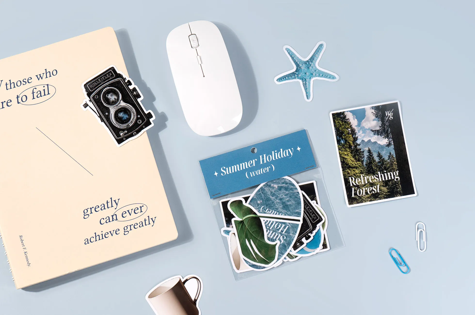 스티커, 엽서, 포스터, 액세서리 등 일상에서 활용 가능한 디자인 상품을 중심으로 한 주제입니다.