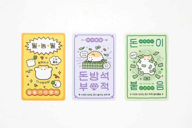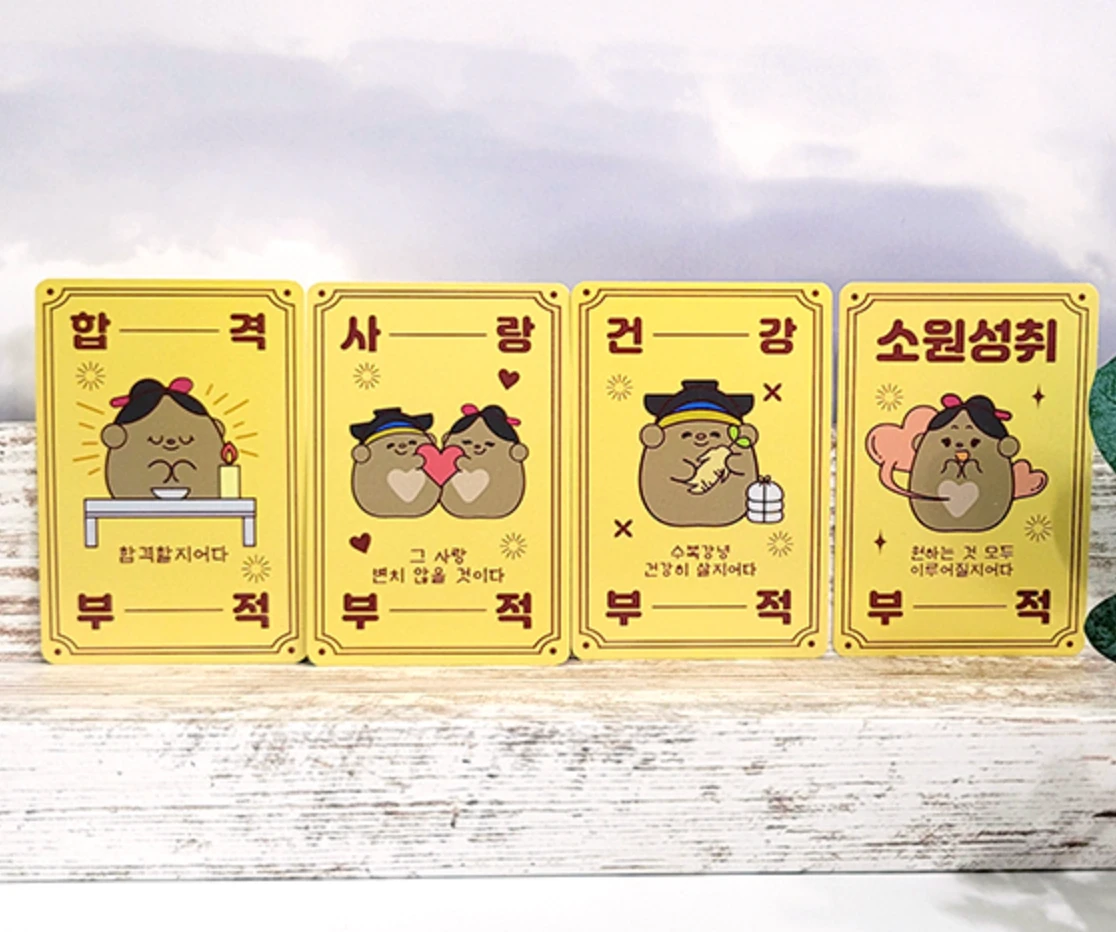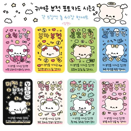 지갑이나 필통에 넣어 휴대할 수 있는 포토카드 형태의 행운 부적입니다.