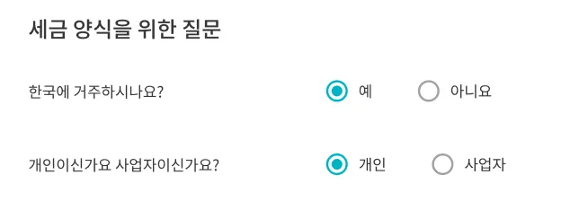 1. 세금 양식을 위한 질문