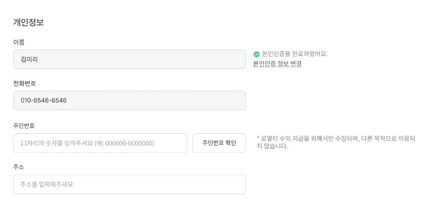 3. 주민등록번호 인증 및 주소 입력