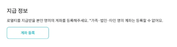 로열티를 지급 받으실 본인 명의의 계좌 정보를 등록해주세요.