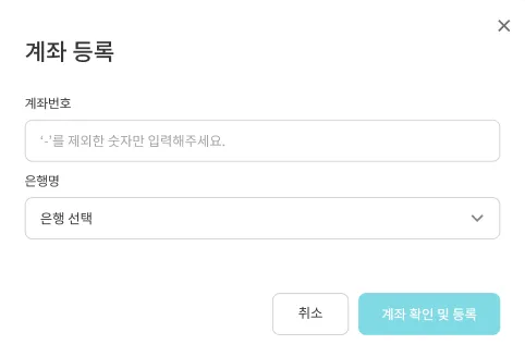 반드시 본인 명의의 계좌만을 등록하실 수 있습니다. (개인 사업자 계좌도 불가)