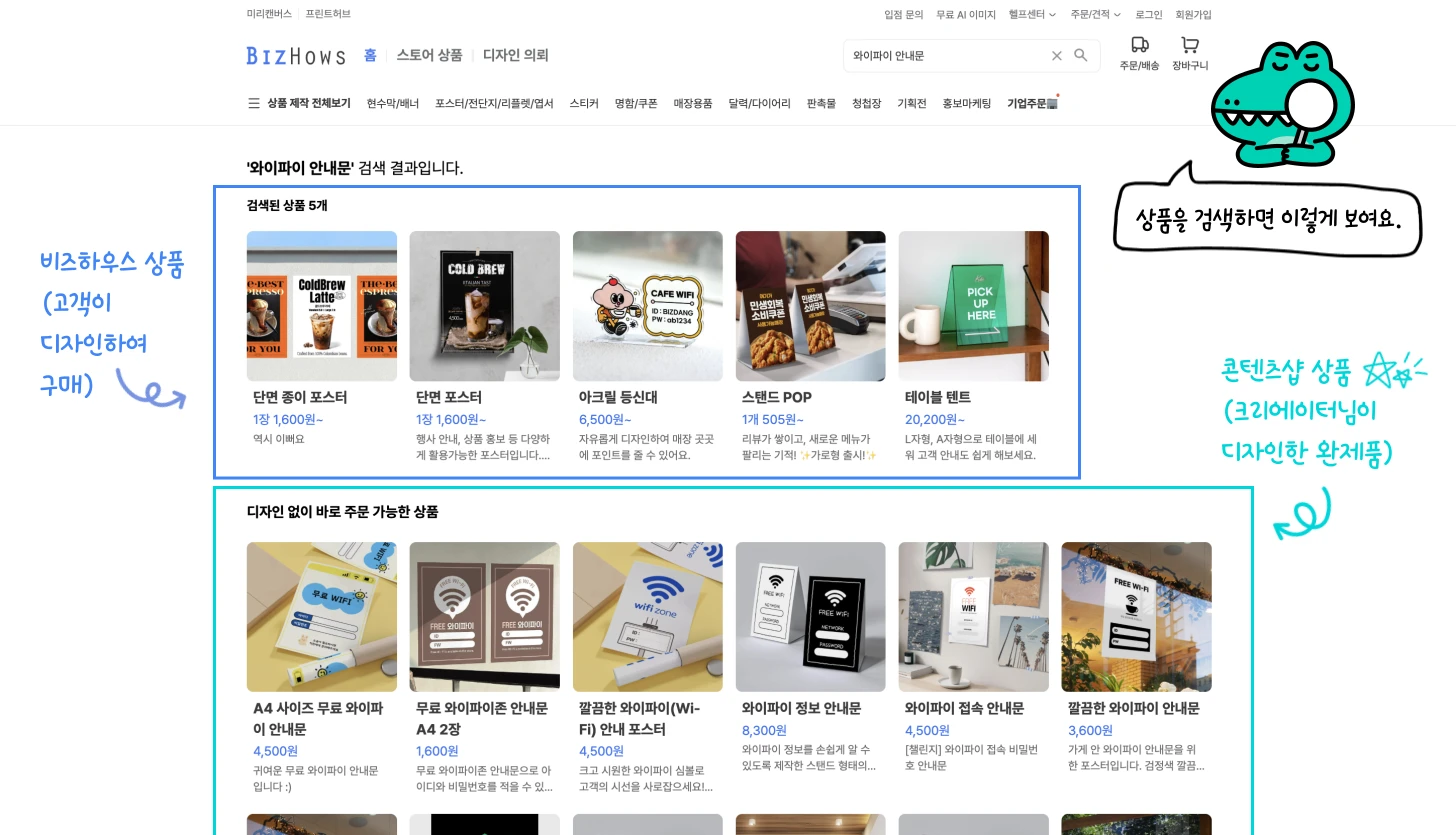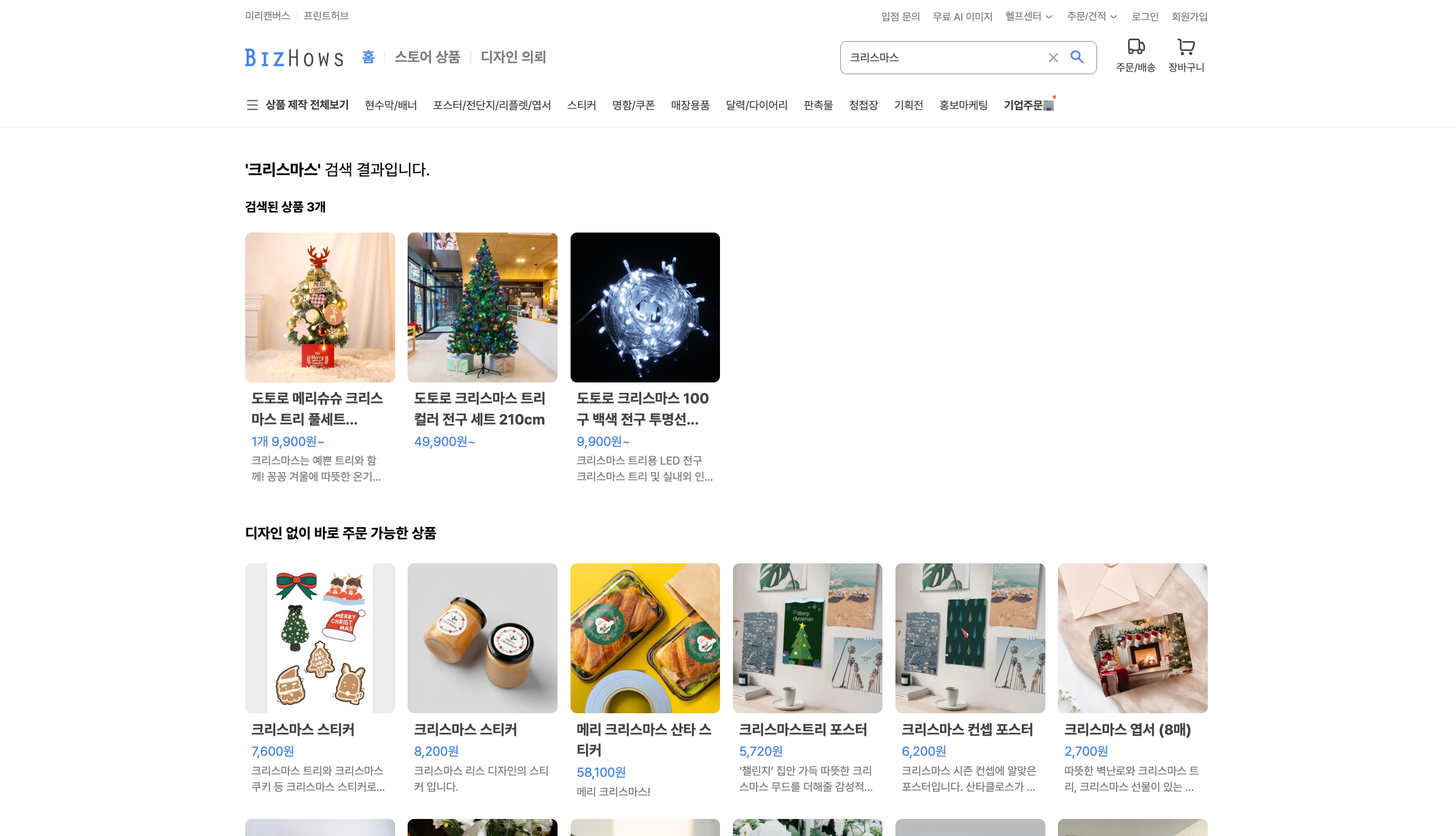 안녕하세요, 미리캔버스 콘텐츠샵 운영팀입니다. 크리에이터님들께 더 많은 판매 기회를 드리기 위해 비즈하우스 상품 검색 결과에 콘텐츠샵 상품이 노출되는 기능을 추가하였습니다. 이제 비즈하우스 고객들이 콘텐츠샵 상품에 더욱 쉽게 접근하고, 상품을 편리하게 구매할 수 있어요 🛒 ※ 미리디 서비스 전시 기준을 충족한 상품만 노출되오니 참고 부탁드립니다. 비즈하우스 상품 검색 결과에 콘텐츠샵 상품이 노출돼요 🎉 비즈하우스 우측 상단 검색창에 키워드를 검색하면, 연관 있는 비즈하우스 상품과 콘텐츠샵 상품이 함께 노출돼요. 검색결과 예시를 바로 확인해 보세요 👀 🔍 크리스마스 🔍 영업시간 안내문 Q. 그 외에는 비즈하우스 어디에서 샵 상품을 찾아볼 수 있나요? 비즈하우스 내 다양한 위치에서 콘텐츠샵 상품이 노출되고 있습니다.