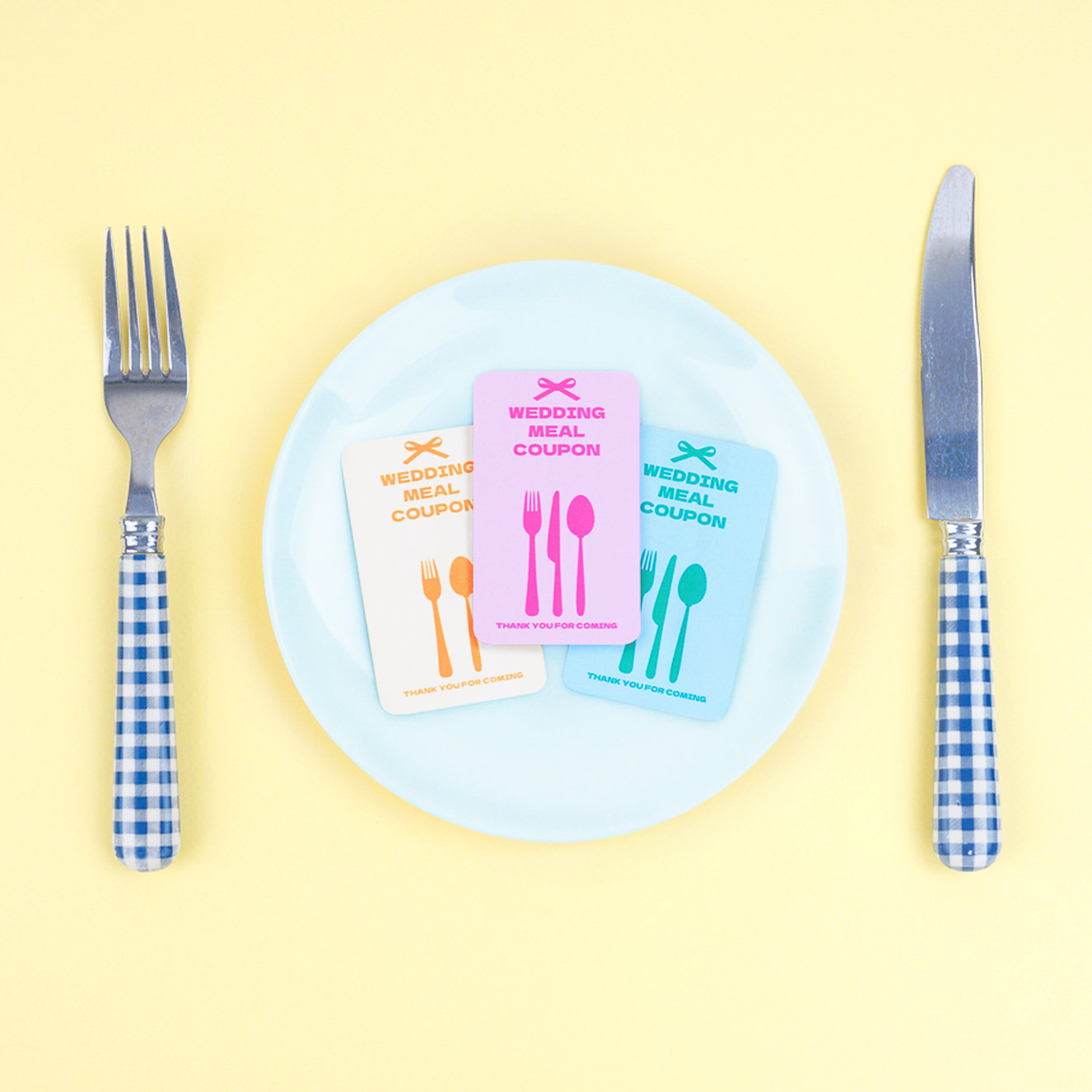 앞뒤 타임 예식의 식권과 섞이지 않기 위해 신랑,신부가 직접 디자인을 해서 준비하는 경우가 많아요.