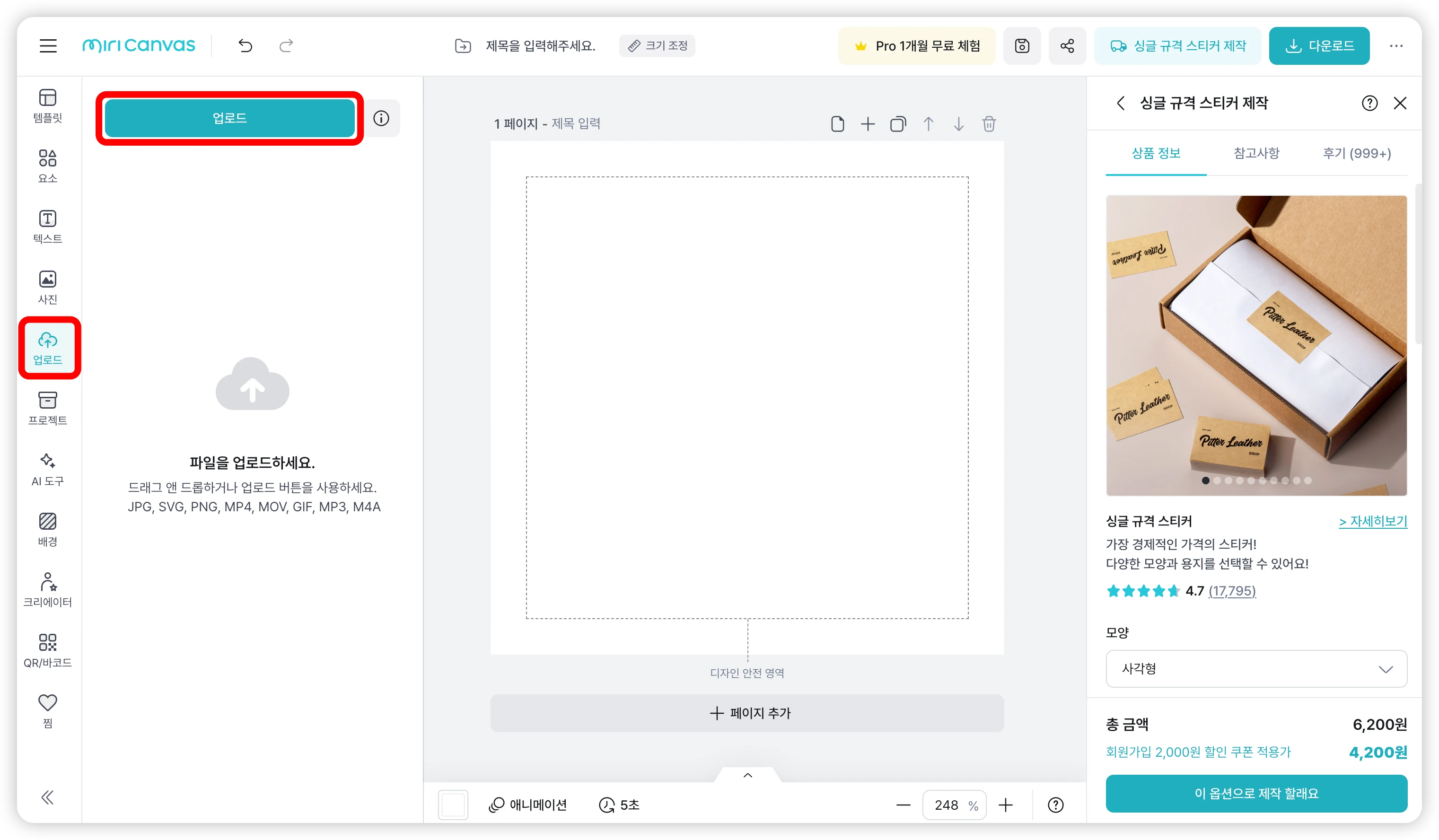 이번 단계에서는 미리캔버스 에디터를 활용하여 상품을 디자인하게 됩니다.