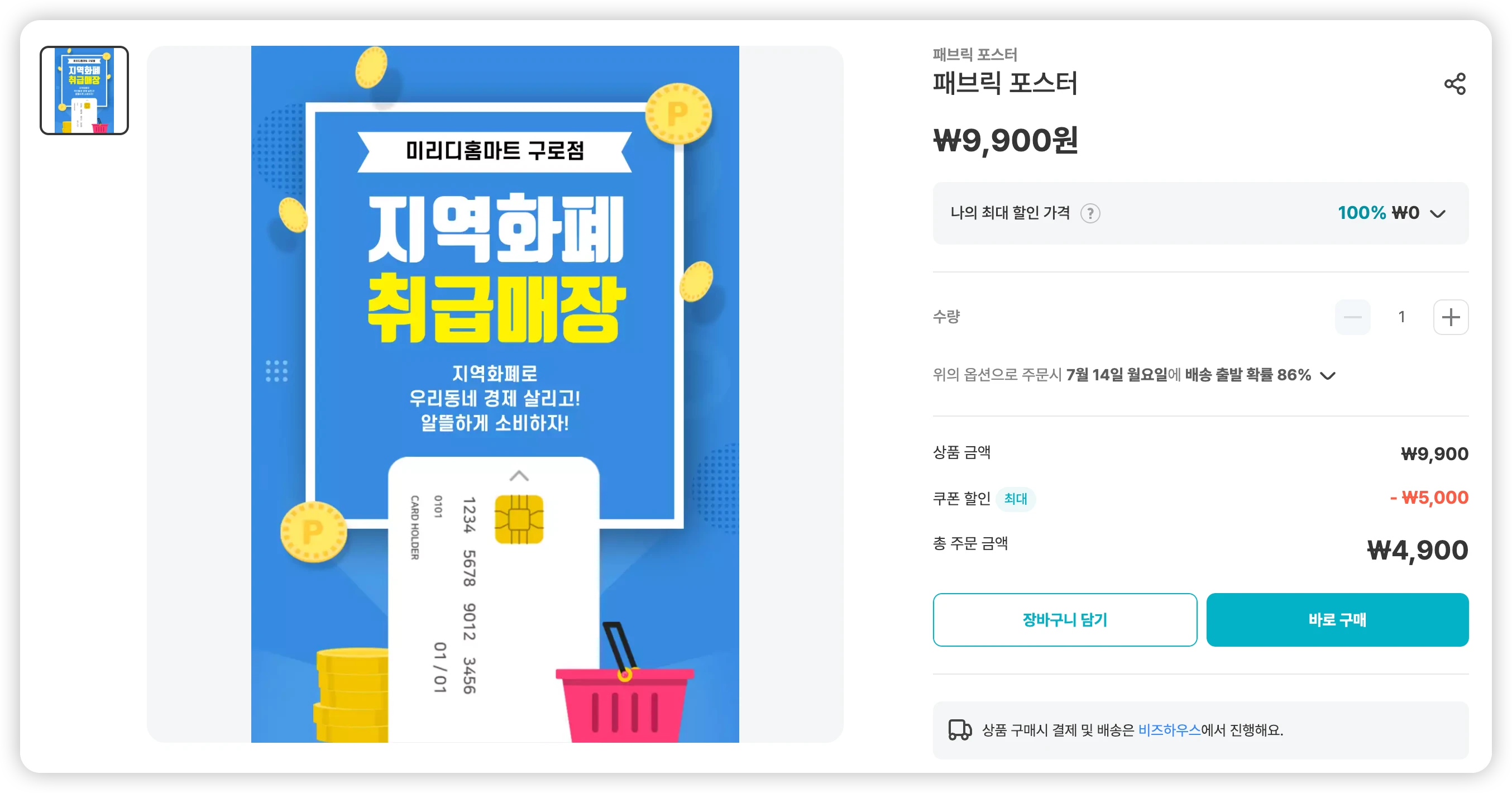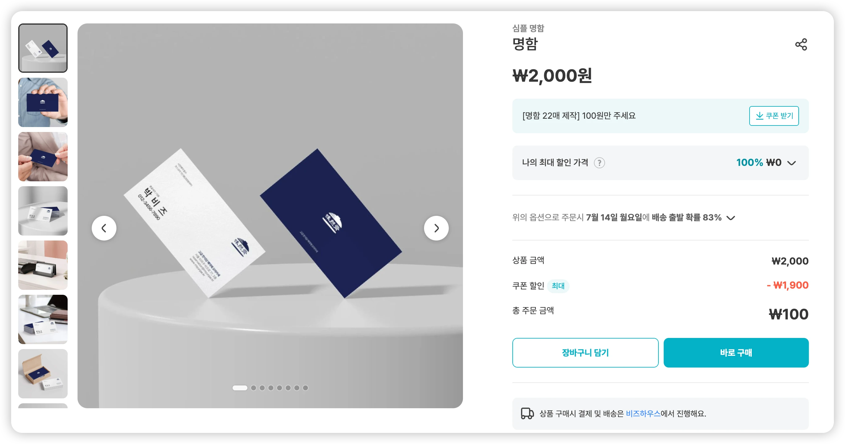 상품 자체의 완성도에 집중하여 디자인을 구성하실 것을 권장드립니다.