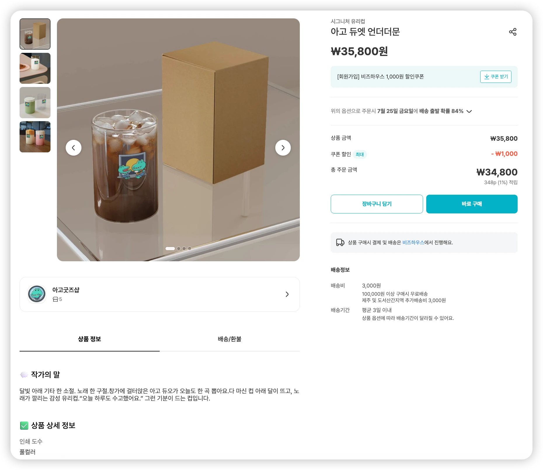 | 상세 페이지에 노출될 상품 설명으로, 상품에 담긴 의도나 특징, 추천 용도 등을 소개하는 짧은 메시지입니다. 작가의 말을 통해 구매자에게 상품의 컨셉을 전달하거나, 제작자의 정체성을 드러낼 수 있습니다. |