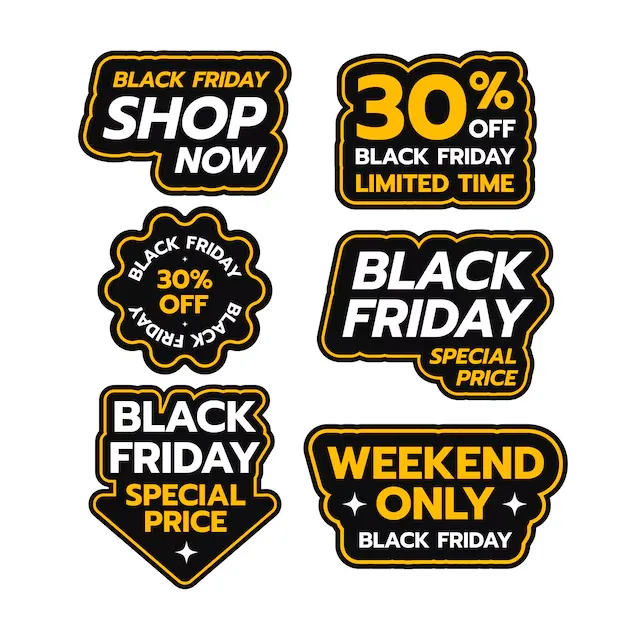 매장에서 사용할 수 있는 블랙프라이데이 세일 안내문, 세일 강조 스티커를 만들어 보세요.