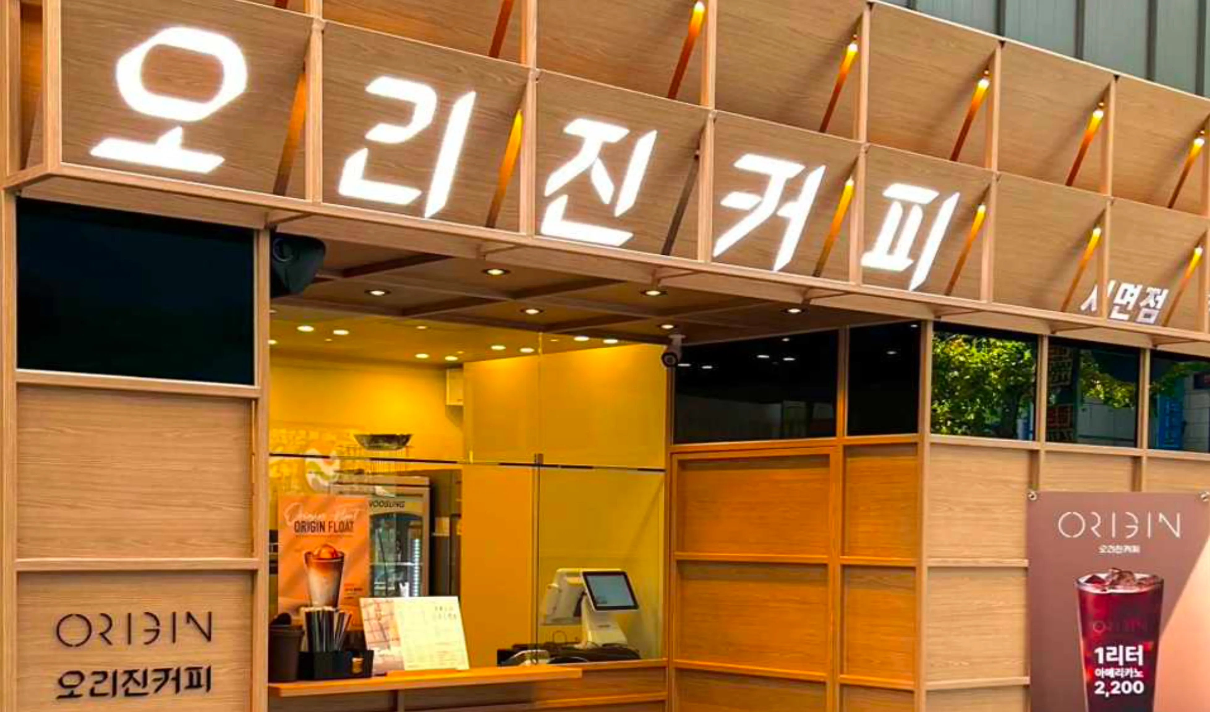 오리진커피 점포는 나무소재를 활용해 소비자에게 편안함을 제공해요!