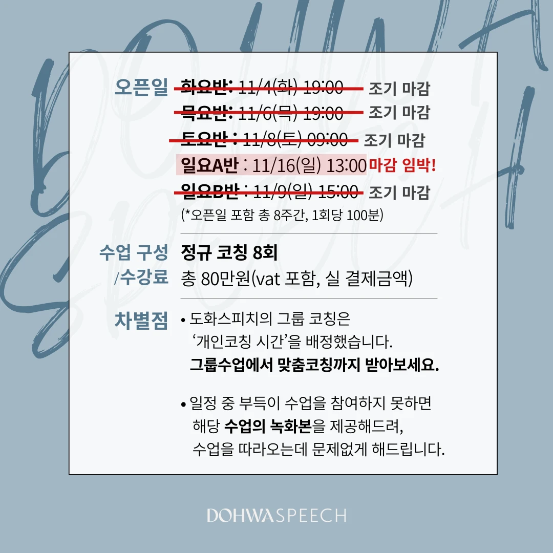 11월 그룹코칭, 딱 1자리 남았습니다!