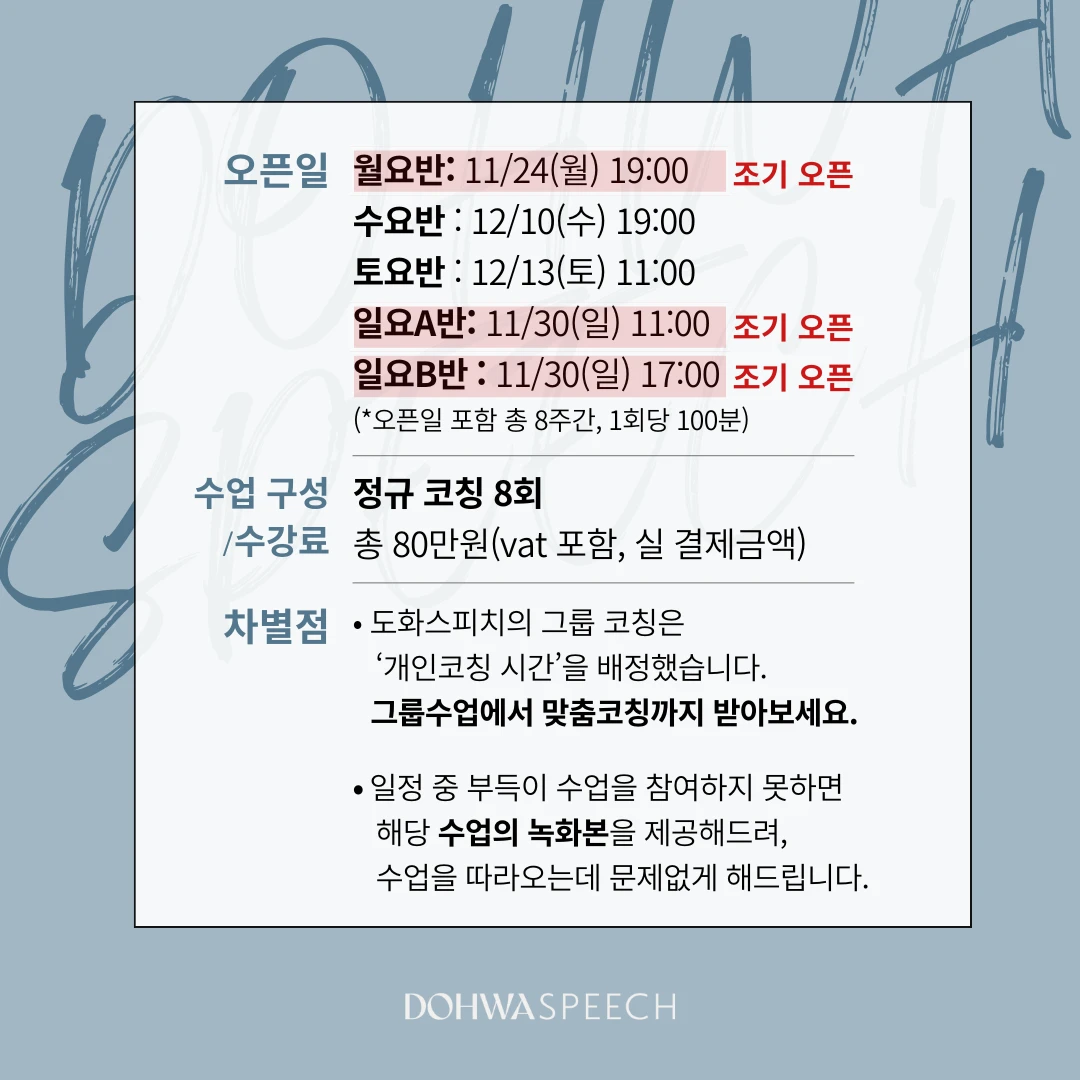 비즈니스 스피치 세 영역을 모두 배웁니다.