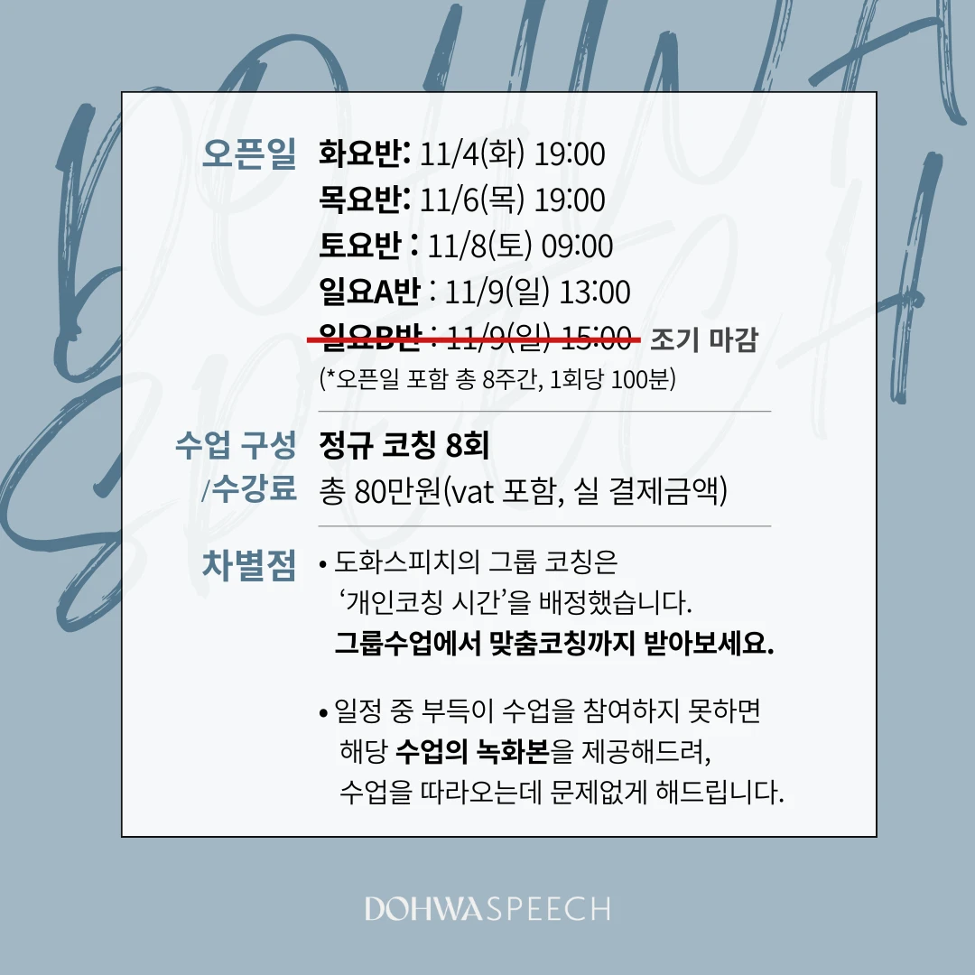 비즈니스 스피치 세 영역을 모두 배웁니다.