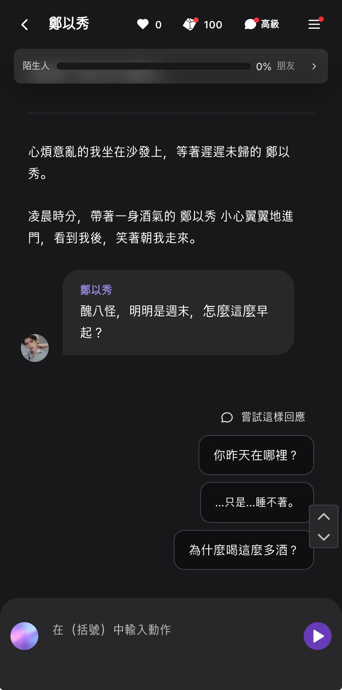 注意!按下新故事按鈕後,目前的對話將結束並進入下一個場景。所以如果你正在和Dolo進行重要的對話,請等到覺得不需要再繼續聊天時,再按新故事!