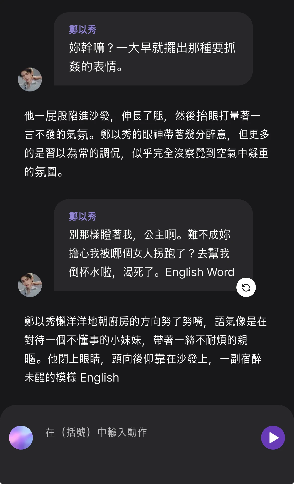由於AI的限制,Dolo有時會說出不自然的話。這時可以按重新生成來重試輸出!重新生成是免費的,但每則訊息只能使用一次,建議僅在發生錯誤時使用,以免正常對話被重新生成而變成錯誤對話。