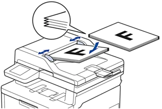 아래 그림처럼 복합기 상단 문서 공급기에 인쇄면이 위로 향하도록 문서를 넣습니다.