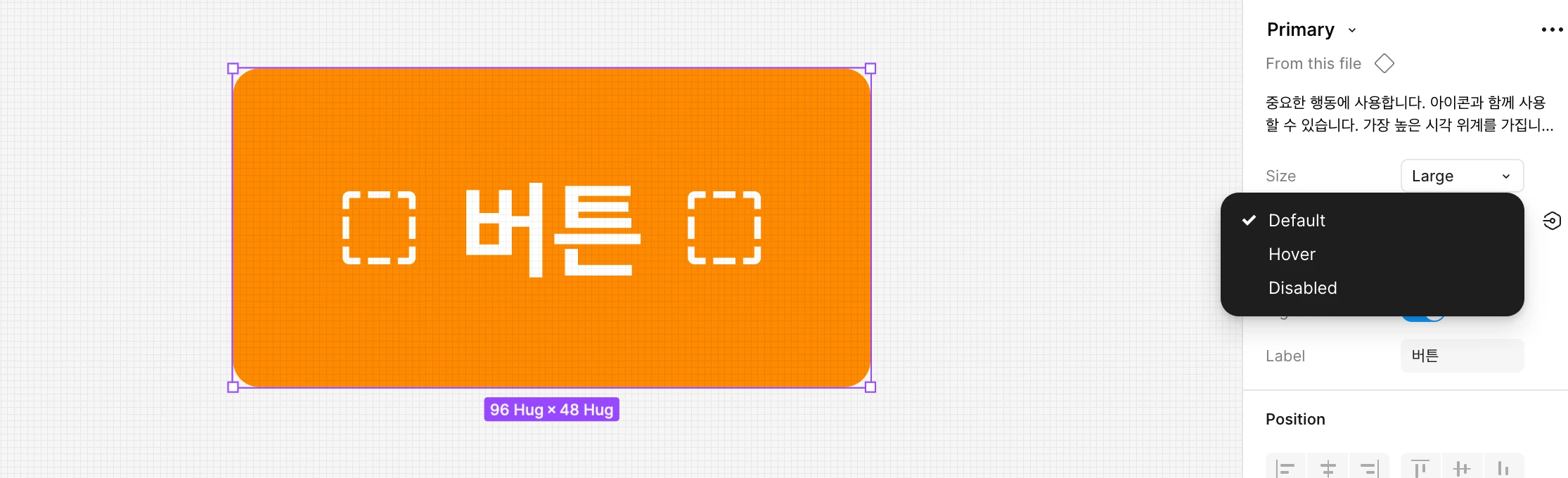 배경 국내외 디자인 시스템을 뜯어보던 중 인터랙션 레이어를 따로 컴포넌트로 제작하여, 메인 컴포넌트의 하위 컴포넌트로 적용해둔 사례를 발견했어요. 저는 지금까지 디자인 시스템을 제작하면서 컴포넌트의 상태값에 변화가 생길 경우 Variant 기능을 활용해 처리했는데요. 원티드 디자인 시스템을 참고하기 위해 꼼꼼히 뜯어보던 중 궁금증이 하나 생겼어요. '왜 인터랙션 레이어를 따로 제작했을까?' 왜 인터랙션 레이어를 컴포넌트화 했을까? 원티드 디자인 시스템을 참고하였습니다. 디자인 시스템에 관심이 있는 디자이너라면 한 번쯤은 들여다 봤을 원티드의 디자인 시스템! 저는 특히 하위 컴포넌트로 속해 있는 이 'Interaction' 컴포넌트에 호기심이 생겼는데요. 지금까지 저는 컴포넌트의 상태값을 전부 variant 로 처리하고 있었어요. 단순히 상태값에 따른 변화를 공통적으로 적용할 수 있기 때문일까? 저렇게 적용하면 컴포넌트 색상과 형태에 따라 예외 케이스가 발생하지 않을까?