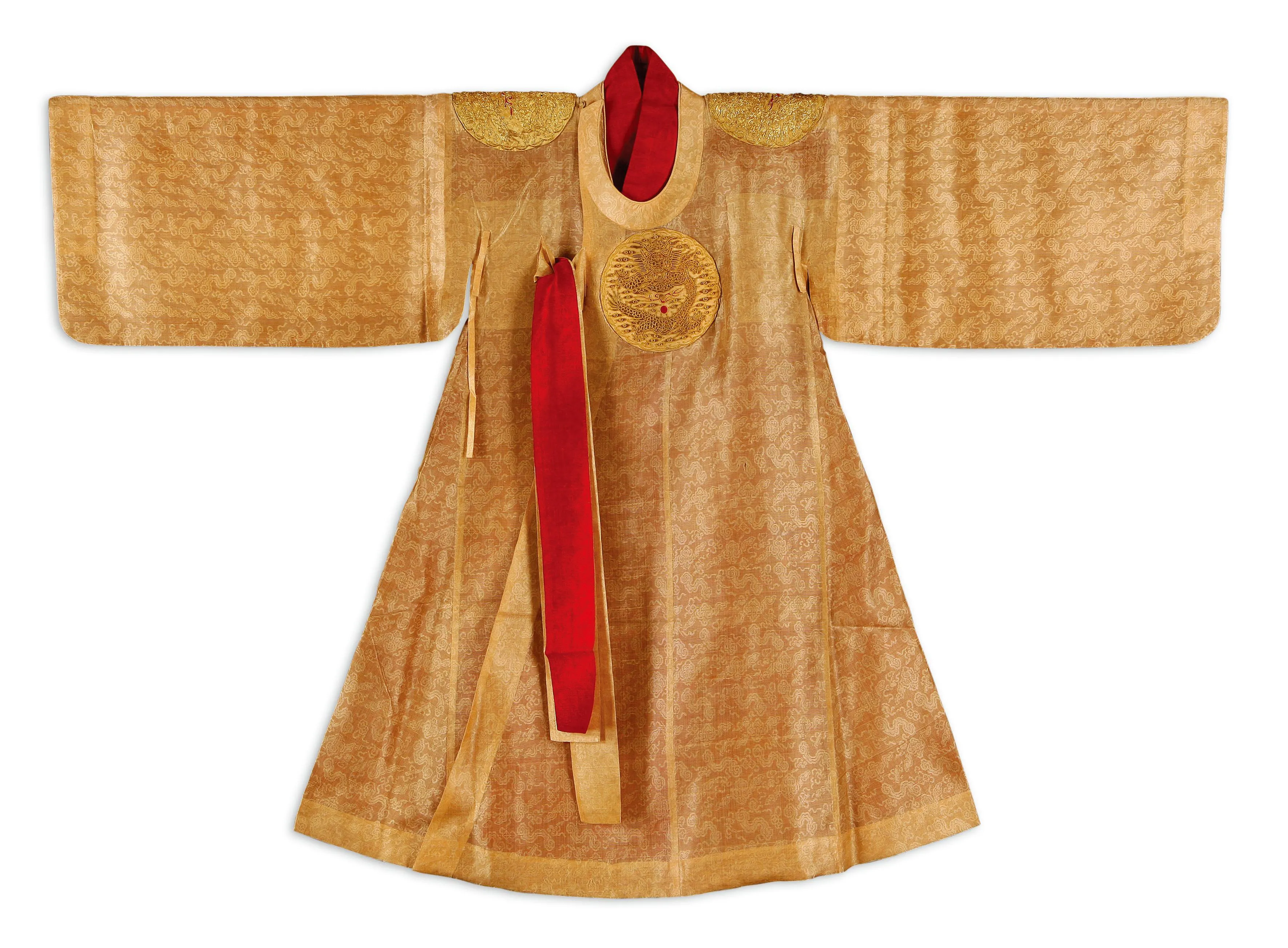 이미지 출처 : 국가유산청 국가유산포털 곤룡포의 특징은 앞가슴과 등, 양어깨에 놓인 용무늬이다. 용은 왕을 상징하는 대표적인 무늬로, 임금의 용보는 용의 발톱이 다섯 개인 오조원룡보, 왕세자는 발톱이 네 개인 사조원룡보이다. 왕세손은 네모난 형태이면서 용의 발톱이 셋인 삼조방룡보를 가슴[胸]과 등[背]에만 달고 있어 흉배胸背라고 해야 옳을 것 같지만 『국조속오례의보서례國朝續五禮儀補序例』에는 방룡보로 기록되어 있다. 용보에 나타나는 용의 형상은 시대에 따라 바뀌었다. 태조의 곤룡포에 그려진 용은 S자로 몸을 틀고 움직이는 비룡이며, 힘찬 발톱 다섯 개가 활발하게 움직이는 역동성에 초점을 맞추고 있다. 또 용의 입에서 상서로운 기운이 뿜어져 나와 초창기 개국을 알린 왕의 역동성을 담고 있다. 반면에 영조의 곤룡포에 그려진 용은 정면을 바라보고 있다. 이 역시 발톱 다섯 개를 서리고 있으나, 정면을 바라보는 용의 얼굴이 시선을 빼앗아 활동성을 드러내기보다 안정감이 나타난다. 이는 경제·문화적 황금기였던 당시의 시대성이 반영되어 조선 왕실의 르네상스를 느끼게 한다. 태조와 영조의 오조원룡보는 니금泥金으로 용을 그렸고, 고종의 곤룡포에는 금사로 수놓은 오조원룡보를 별도로 만들어 붙였다. 특히 고종의 오조원룡보에는 붉은색과 흰색의 여의주가 있어 다른 용보와 다른 양상을 띤다. 가슴과 오른쪽 어깨에는 해를 상징하는 붉은색의 여의주가 있고, 등과 왼쪽 어깨에는 달을 상징하는 흰색의 여의주가 있다. 용의 몸통은 아주 정교하게 비늘을 수놓았으며, 보의 가장자리는 능선으로 마감하여 왕·왕비의 것과는 차등을 두었다. [한국민속대백과사 인용]