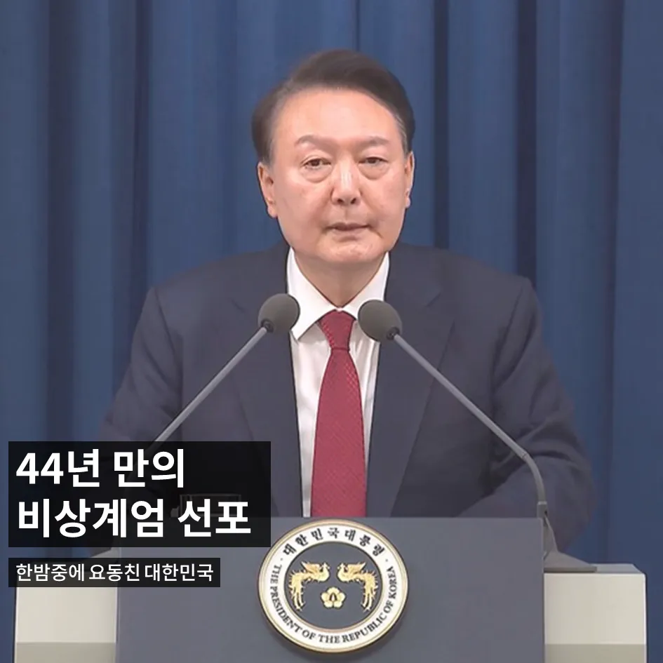 안녕하세요. 2024.12.04 경제 카드뉴스입니다. 오늘은 많은 분들께서 충격을 받으셨을 비상 계엄 선포에 대한 내용을 다뤄보았습니다. 3일 오후 10시 30분 경 이루어진 비상계엄은 약 6시간 만에 해제되며 마무리되었습니다. 하지만, 우리나라의 경제는 여전히 그 여파로 흔들리고 있는 것 같습니다. 급작스러운 상황으로 인해 여러 경제 지표가 크게 요동치고 있지만, 이럴 때일수록 침착하고 차분하게 대응할 필요가 있을 것 같습니다. 오늘도 시청해주셔서 감사합니다. 다음에도 유익한 컨텐츠로 돌아오겠습니다.