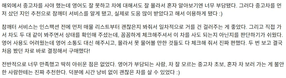 차 지식 없는 사람 입장에서 진짜 든든했습니다!