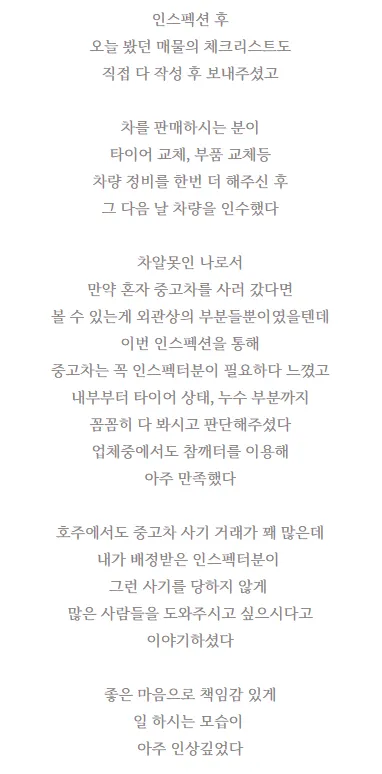 ✨ 참깨터 중고차 인스펙션 서비스 후기 ✨
