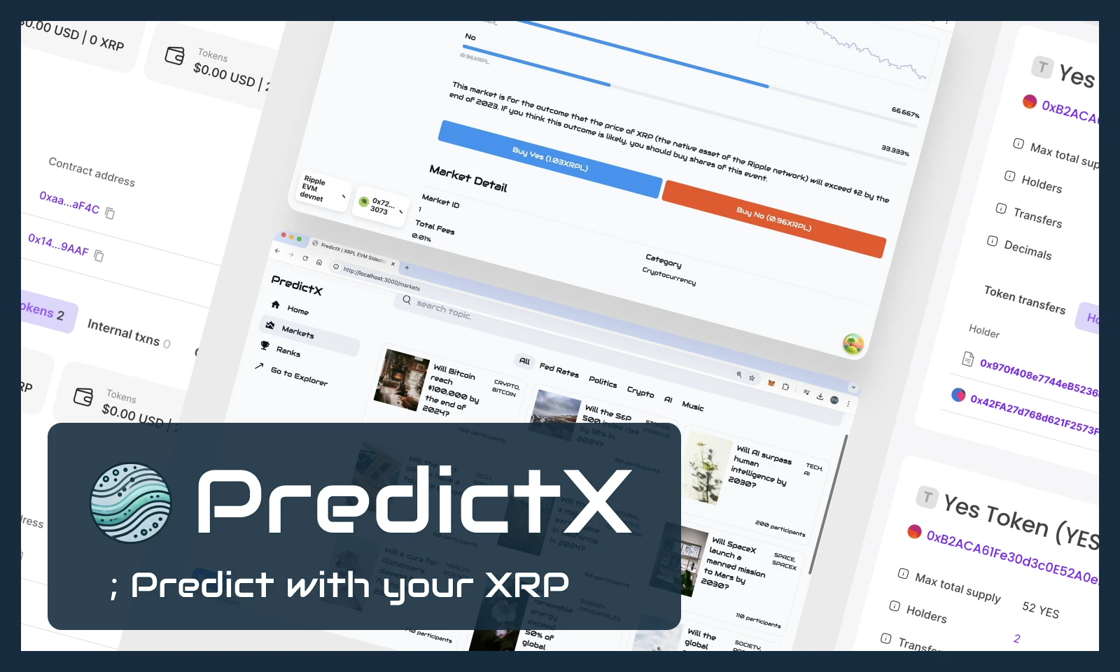 PredictX is an innovative prediction market platform built on the XRPL-based EVM sidechain, designed to maximize the potential of your XRP. By leveraging real-time social media trends and introducing innovative DeFi applications, PredictX boosts XRP liquidity and accelerates ecosystem growth. Engage in dynamic and relevant predictions that not only provide opportunities for yield but also contribute to the expansion of the XRPL ecosystem.