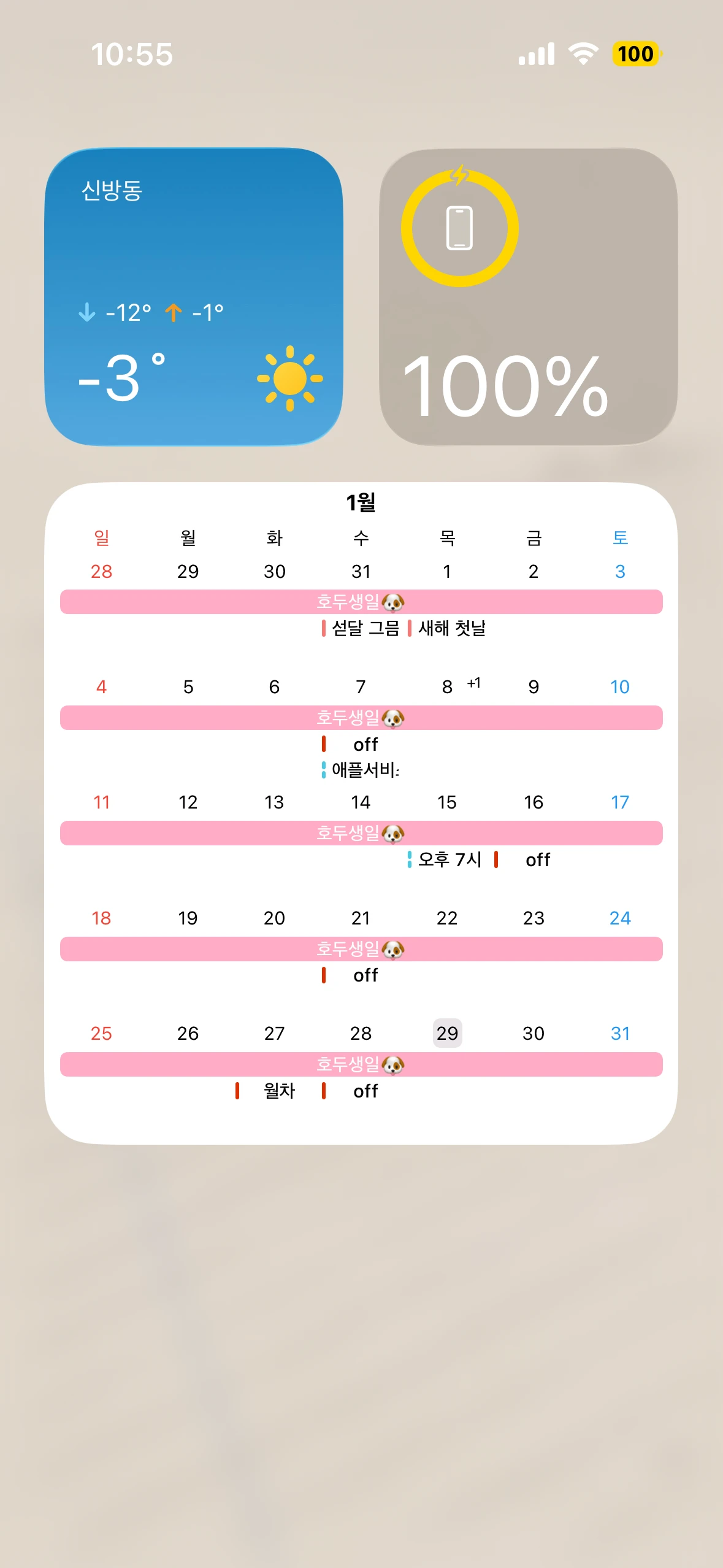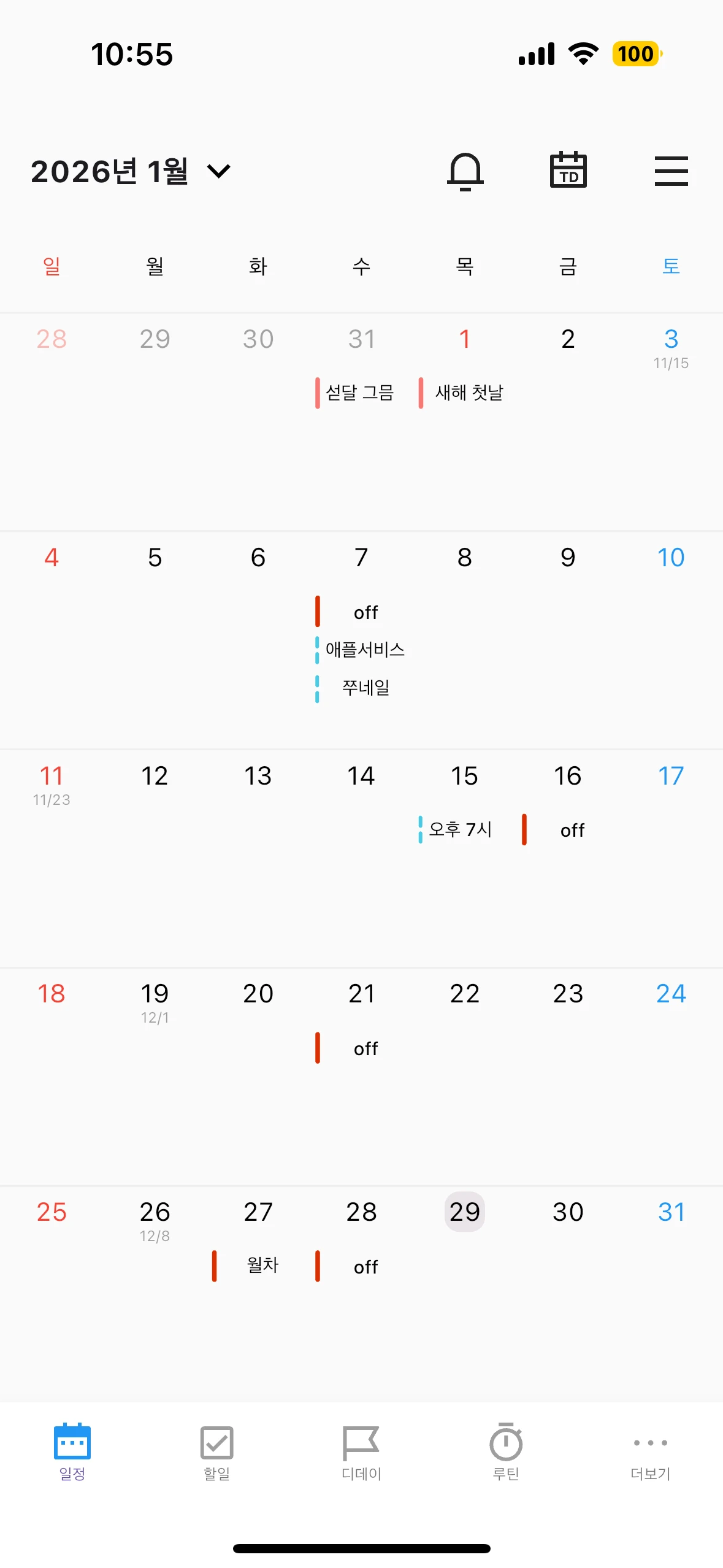 개인적 일정을 모두 블러 처리해서 사진을 첨부하기 어려워 글로 남깁니다.