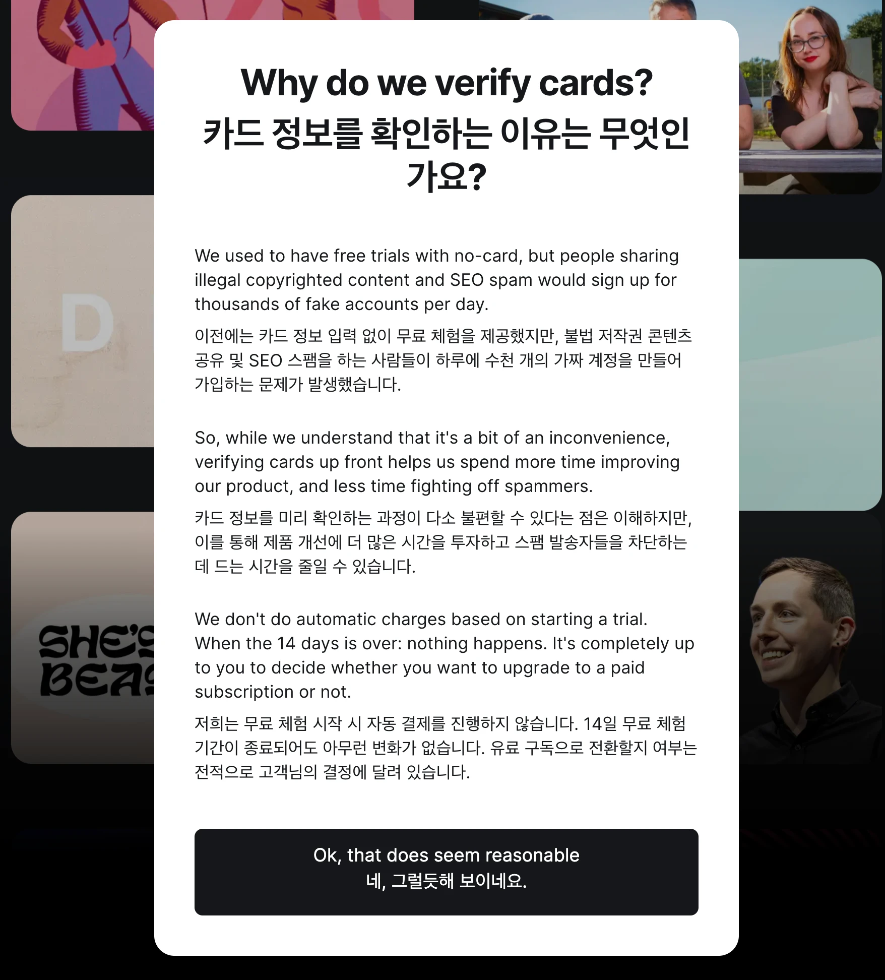 Ghost 스패머 차단을 위해 가입 시 카드 정보 입력 (우리한테 지금 필요한 건 아니지만 참고용)