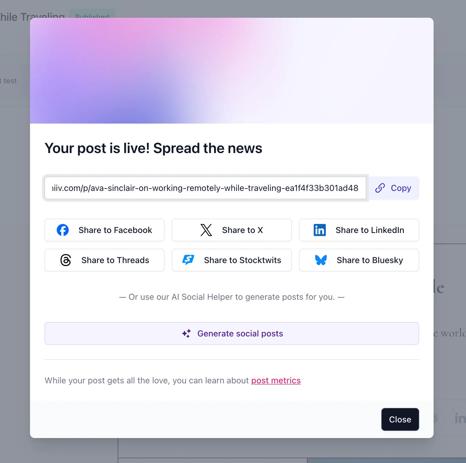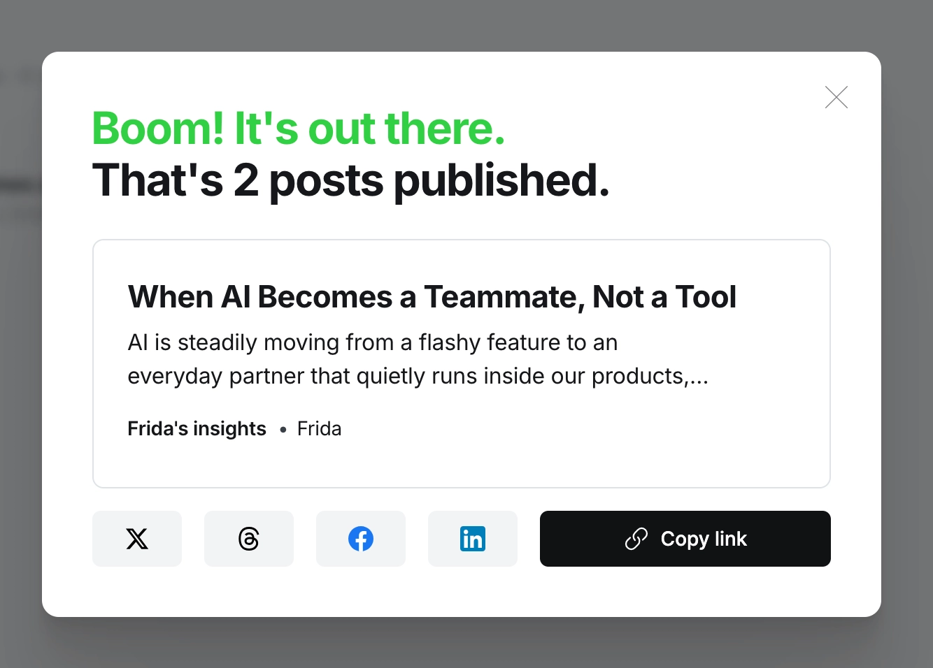 글 발행 후 공유 유도 → 노트 써라, sns에 올려라, 이미지/영상으로 공유해라..