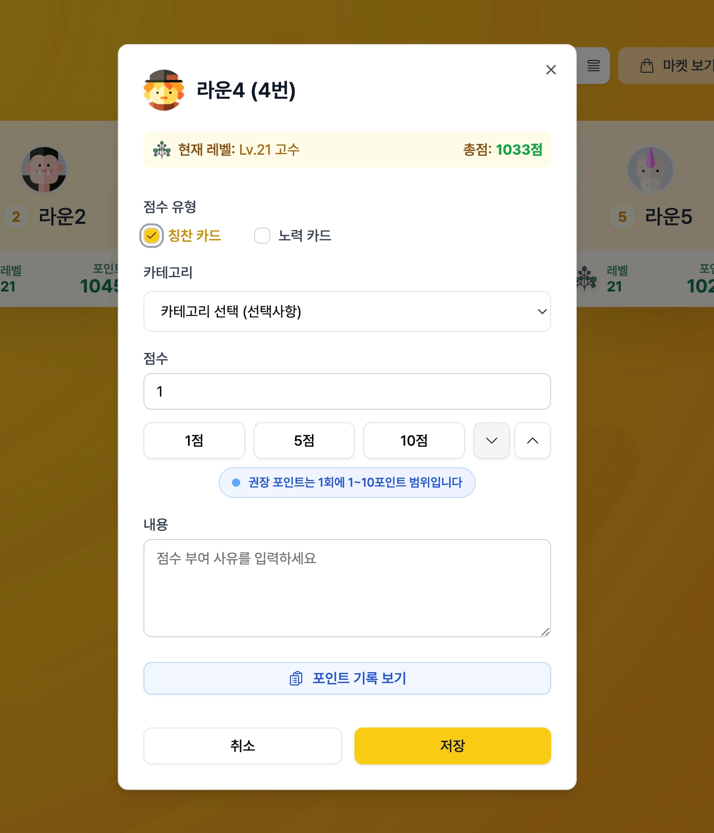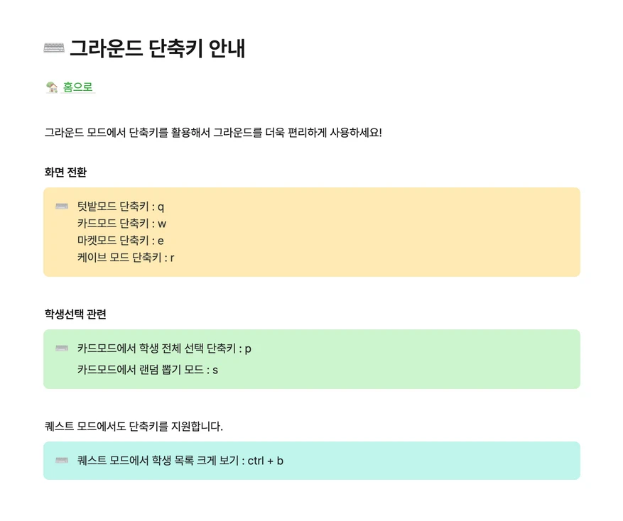 그라운드의 단축키가 추가되었고, 포인트 부여시 전자칠판 등에서 더욱 쉽게 포인트를 부여할 수 있는 기능이 추가되었습니다. ^^