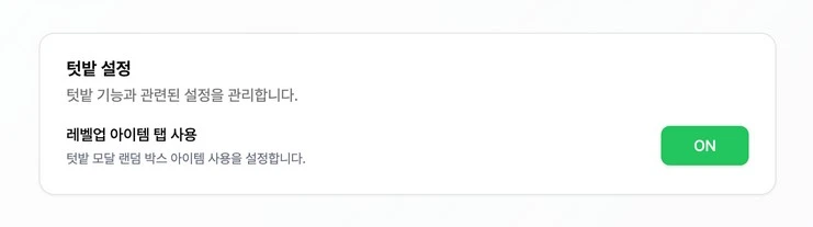 또한 레벨업 아이템은 클래스 설정 메뉴에서 온/오프를 선생님이 설정하실 수 있습니다.