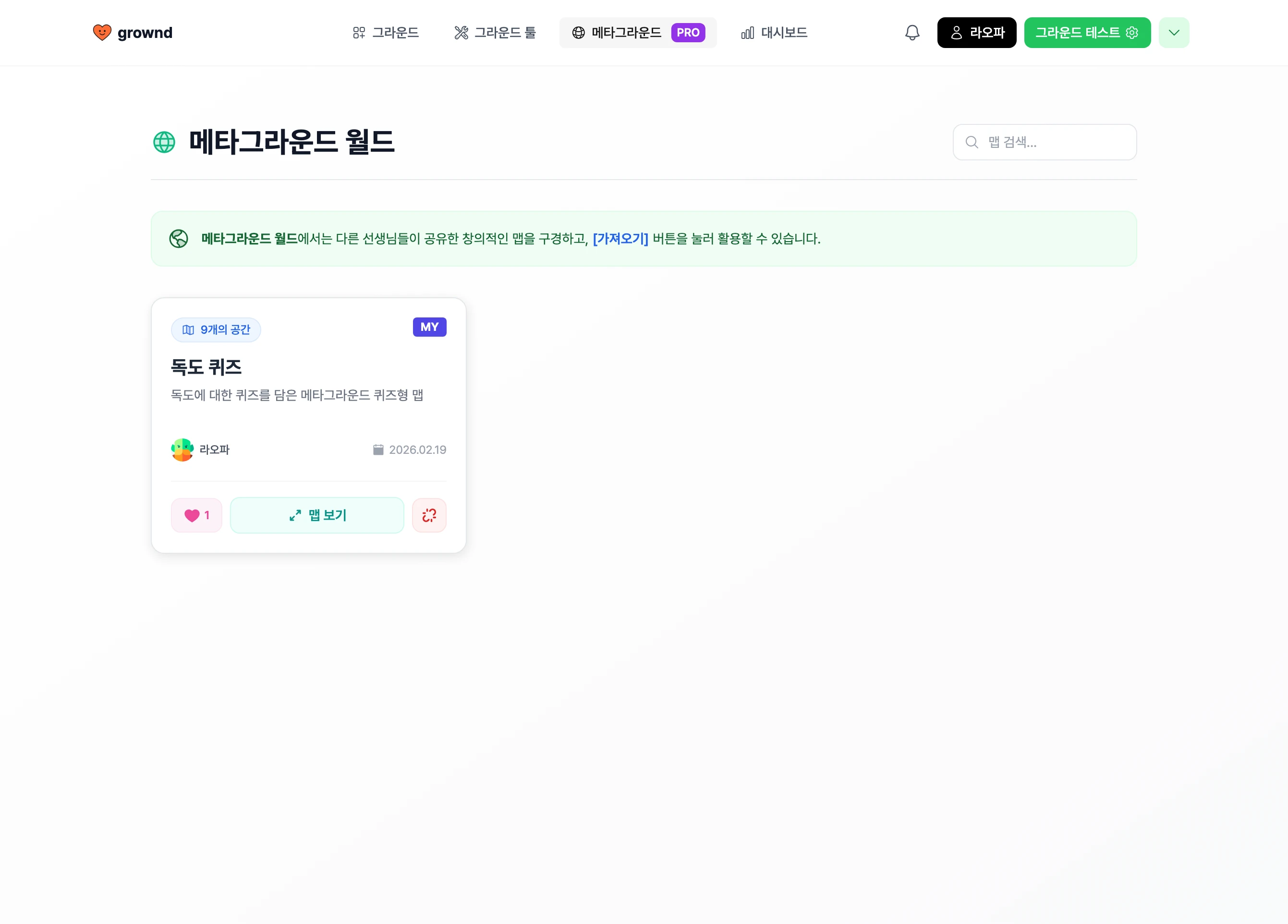 ๋๋ค. [๋ฉํ๊ทธ๋ผ์ด๋] ๋ฉ๋ด์์ ์ ๊ทผํ ์ ์์ผ๋ฉฐ, ๋ฉํ๊ทธ๋ผ์ด๋ ์์ฑ ํ ๋งต ์๋ํฐ๋ฅผ ํตํด ๋ฉํ ๊ทธ๋ผ์ด๋๋ฅผ ์ค๊ณํ ์ ์์ผ๋ฉฐ, ์์ฑ๋ ๋ฉํ ๊ทธ๋ผ์ด๋๋ ํ์๋ค์ด ์ ์ ํ ์ ์์ต๋๋ค.