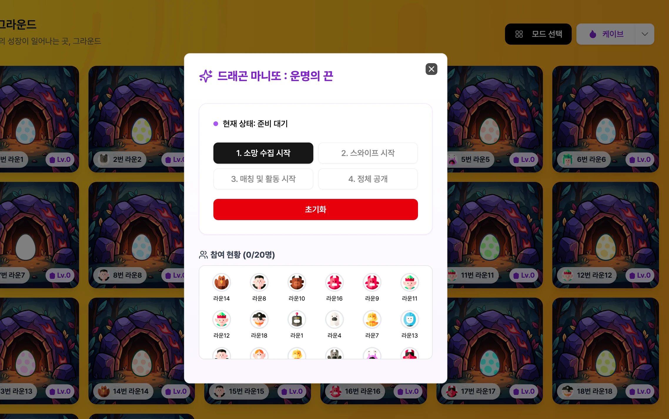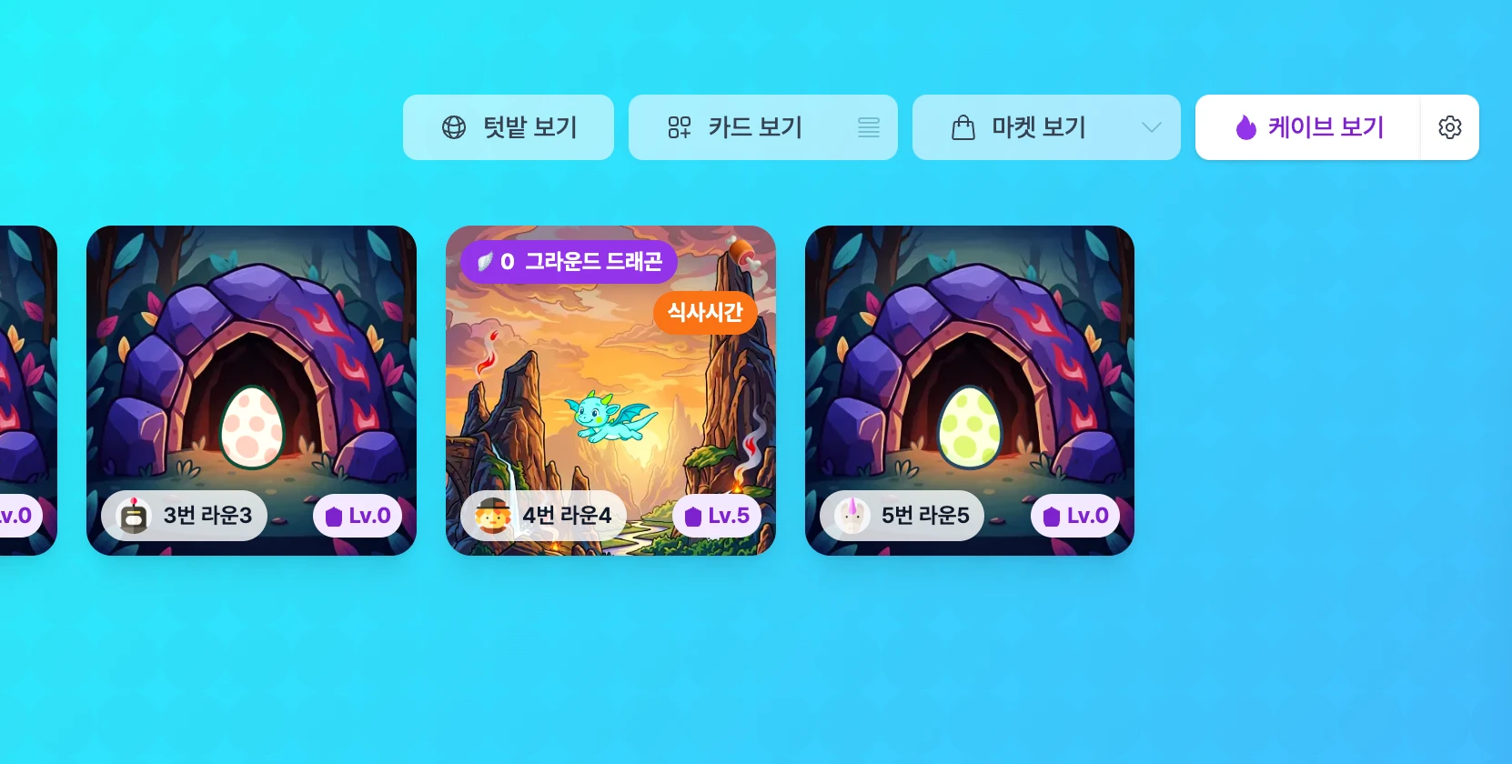 케이브 모드에서 우측 상단의 케이브 관리 버튼을 눌러 케이브 관리에 대한 창을 열어 케이브 전반에 대한 설정을 진행합니다. 먹이 지급, 드래곤 초기화 및 컬러 변경, 드래곤 일과 , 드래곤 떠남 주기, 케이브 규칙 등 다양한 케이브에 대한 모든 설정이 이뤄지는 창입니다.
