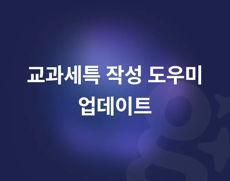์ดˆ๋“ฑ ๊ต๊ณผ์„ธํŠน ์ž‘์„ฑ ๋„์šฐ๋ฏธ ์‹ ๊ทœ ์ถ”๊ฐ€! ์ด์ œ ์ดˆยท์ค‘ยท๊ณ  ๋ชจ๋‘ ์ง€์›ํ•ฉ๋‹ˆ๋‹ค!