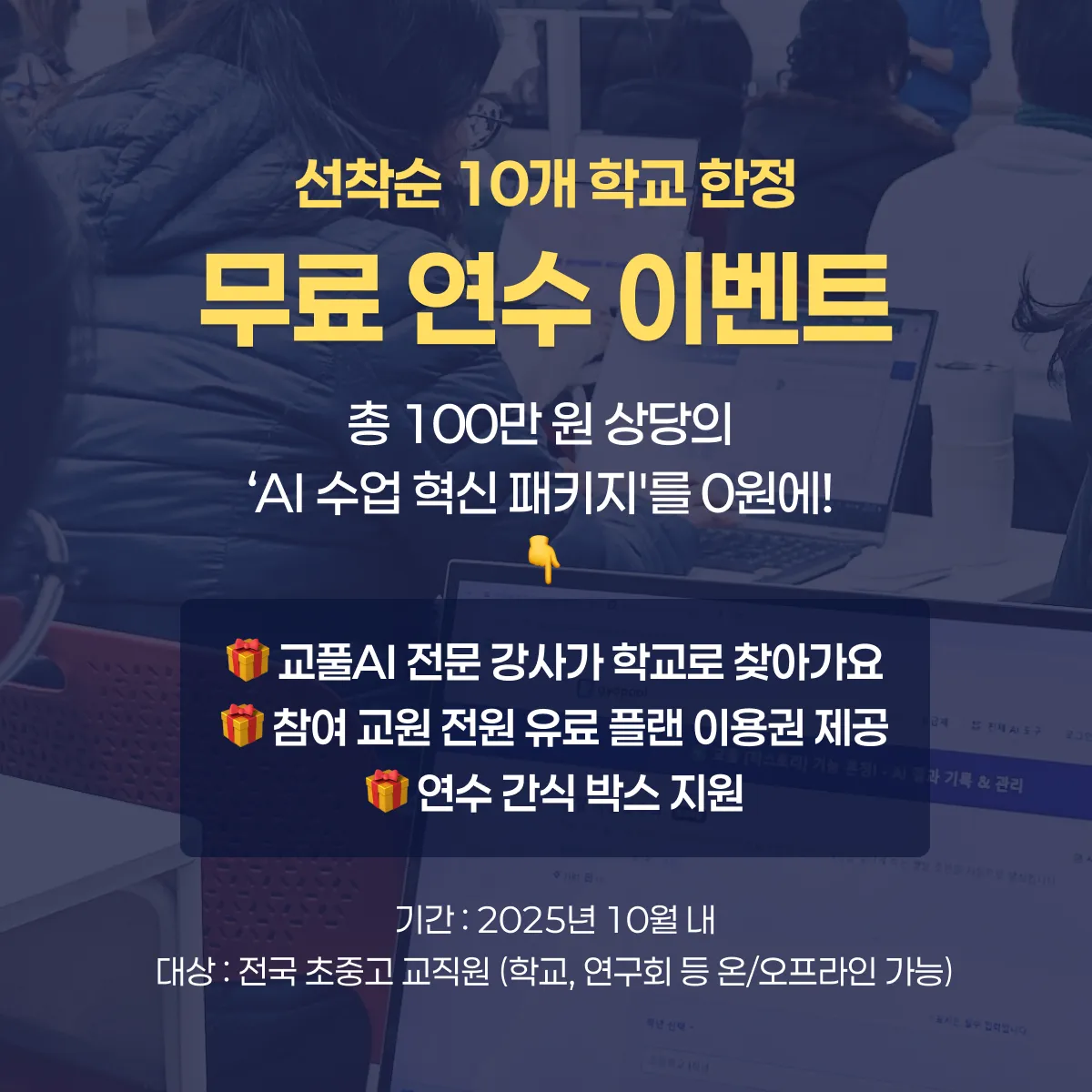 "ํ๊ต ์์ฐ ๊ฑฑ์ ์์ด, ๋ฌด๋ฃ๋ก AI ์ฐ์๋ฅผ ์ฐ๋ฆฌ ํ๊ต์ ์ ๋ฌผํ์ธ์!" ๊ตํAI๊ฐ ์ ์๋๋ค์ ์์