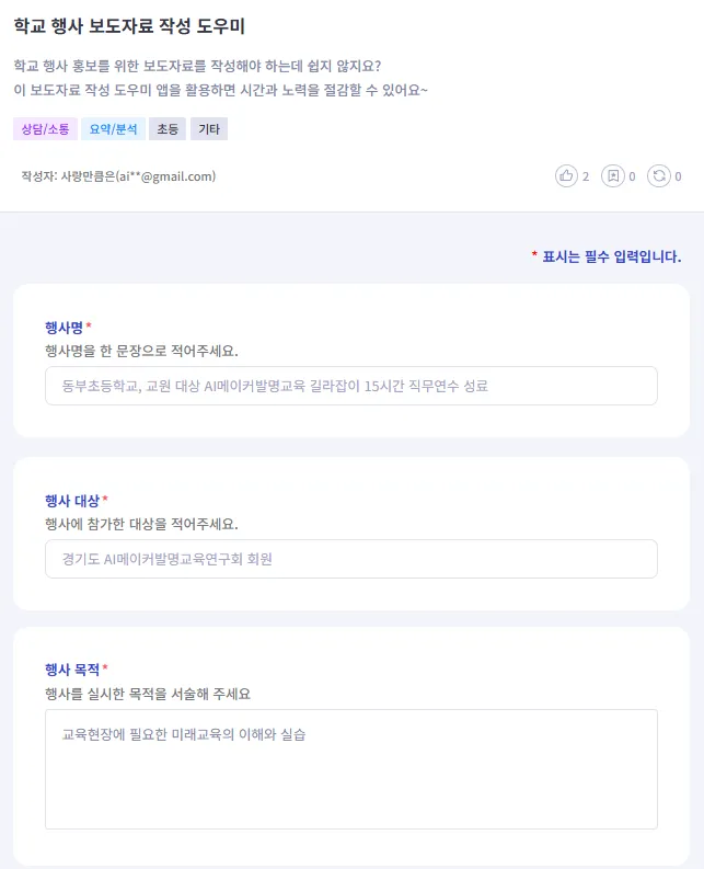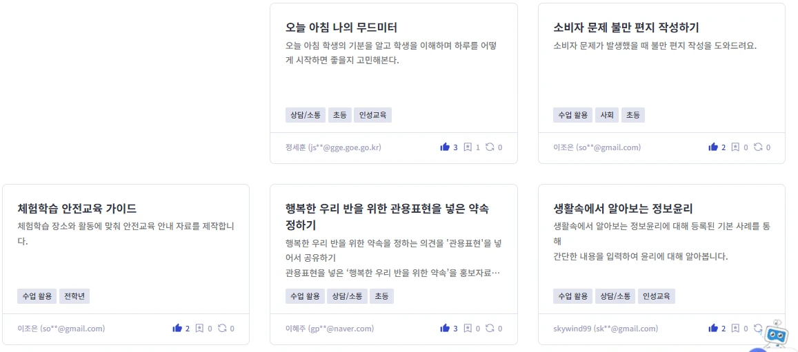 안녕하세요 😊 교풀 AI입니다. 지난 10월 13일, 청옥중학교에서 많은 선생님들과 함께 교풀 AI 연수를 진행하였습니다. 교풀AI의 연수에는 빠질 수 없는 선생님들의 위한 간식 선물입니다. 이번 연수는 '컨닝 페이퍼'라는 주제로, 교풀AI의 핵심 기능인 'AI 앱 메이커'와 'AI 클래스'를 심도 있게 살펴보는 시간이었습니다. 짧은 시간이었음에도 불구하고, 선생님들의 번뜩이는 아이디어가 담긴 AI 앱들이 탄생하는 순간을 함께 하였습니다. ✨ 체육: 농구 규칙을 설명하고 교정 행동을 알려주는 AI 앱 ✨ 과학: 원심력의 이해를 통해 논술 평가를 하는 AI 앱 ✨ 미술: 특정 화가의 작품 세계를 가상으로 인터뷰하는 AI 앱 ✨ 사회: 가상의 법률안을 직접 만들어보는 AI 앱 등등 정말 다양한 과목에서 바로 활용할 수 있는 멋진 아이디어들이 쏟아져 나왔습니다.