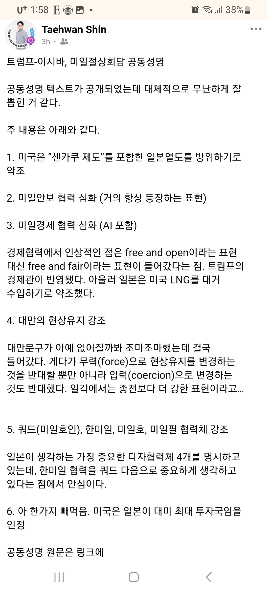 근래 장안의 화제가 된 뮌헨안보회의... 2월 15일 한국 조태열 외교부 장관과 미국 마르코 루비오 국무장관은 첫 외교장관회담을 개최했다. 이를 요약하는 미국 국무부의 공식 기록을 하상응 교수님이 페이스북에 올리시면서 두 지점이 눈에 거슬렸다고 해서 유심히 본 결과: "They discussed the need to continue to advance economic cooperation in line with President Trump's agenda, including through closer alignment on critical emerging technologies and joint business initiatives." "Secretary Rubio reaffirmed America's commitment to the complete denuclearization of the DPRK while expressing the Trump administration's openness to dialogue." 즉, 양국은 경제협력 증진의 필요성을 논의했는데 '트럼프 대통령의 어젠다에 따라' 진행되어야 한다는 것은... 과연 한국의 이해관계에 부합하는 것일까? 트럼프가 이미 예전에도 한국을 부자나라라고 지칭하면서 대미 무역흑자에 대해 불만을 표한 상태에서? 그리고 북한의 완전한 비핵화 목표를 견지했다고는 하는데... 추가적으로 트럼프 행정부는 대화에 열려 있다고 굳이 추가한 이유가? 북한이 핵무기를 포기할 가능성이 0에 수렴해가고 있는데 대화의 가능성도 언급했으면 흠... 뭘 암시하는 걸까... 기우이길 바라겠지만 '남한 패싱' 당하는 거 아닌가 싶다- 참고로 <An America first approach to U.S. national security> 책에서는 싱가포르 회담에서 문재인 대통령이 북한에 지나치게 양보하고 싶어해서 의도적으로 싱가포르 회담에서 배제했다는 이야기가 버젓이 실려 있다 ;; 한국 측 발표문을 보니 위와 같은 내용은 당연히(?) 빠져 있음 ^^;;