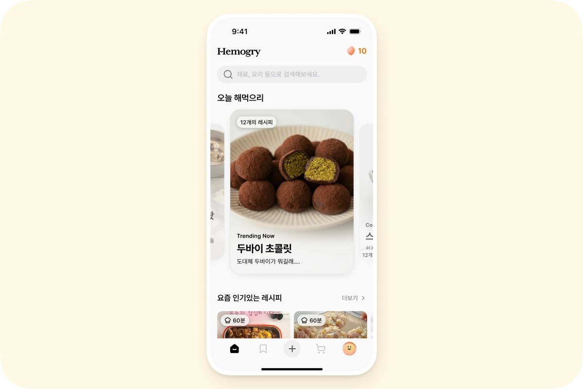 ๋ง์ ๋ ์ํผ๋ฅผ ๋ฐ๋ก ๋๋ฌ๋ณผ ์ ์๋ ํ๋ฉด์ด ๋จผ์ ๋ณด์ฌ์. ๐ ๋ญ๊ฐ ๋ฌ๋ผ์ก๋์? 1. ํ์์ ๋ฐ๋ก ๋ ์ํผ๋ฅผ ํ์ํ ์ ์์ด์! ์ง๊ธ ๋ง์ด ๋ณด๋ ๋ ์ํผ, ๋น ๋ฅด๊ฒ ๋ง๋ค ์ ์๋ ๋ ์ํผ, ์๋ก ๋ง๋ค์ด์ง ๋ ์ํผ๊น์ง ํ ํ๋ฉด์์ ์์ฐ์ค๋ฝ๊ฒ ์ด์ด์ ๋ณผ ์ ์์ด์. SNS์์ ์๋ฆฌ ์์์ ๋จผ์ ๋ณด์ง ์์๋, Hemogry ์ฑ ์์์ ๋ฐ๋ก ๋ ์ํผ๋ฅผ ๋๋ฌ๋ณด๊ณ ์ ์ฅํ ์ ์๋๋ก ๊ตฌ์ฑํ์ด์. 2. "๋ค๋ฅธ ์ฌ๋๋ค์ ๋ญ ํด๋จน์ง?"๊ฐ ๊ถ๊ธํ ๋ ๋ ์ ์ฉํด์ก์ด์! ๊ทธ๋์์ ๋ด๊ฐ ์ ์ฅํ ๋ ์ํผ ์์ฃผ๋ก ์ฌ์ฉํ๊ฒ ๋๋ค๋ฉด, ์ด์ ๋ ์์ฆ ์ด๋ค ๋ ์ํผ๊ฐ ๋ง์ด ๋ณด๊ณ ์ ์ฅ๋๋์ง ํ ํ๋ฉด์์ ๊ฐ๋ณ๊ฒ ํ์ธํ ์ ์์ด์. 3. ๋ ์ํผ๋ถ์ ๊ทธ๋๋ก ์ด์ฉํ ์ ์์ด์! ๊ธฐ์กด์ ์ฌ์ฉํ์๋ ๋ด ๋ ์ํผ๋ถ ํ๋ฉด์ ๊ทธ๋๋ก ์ ์ง๋ฉ๋๋ค. ํ๋จ ๋ค๋น๊ฒ์ด์