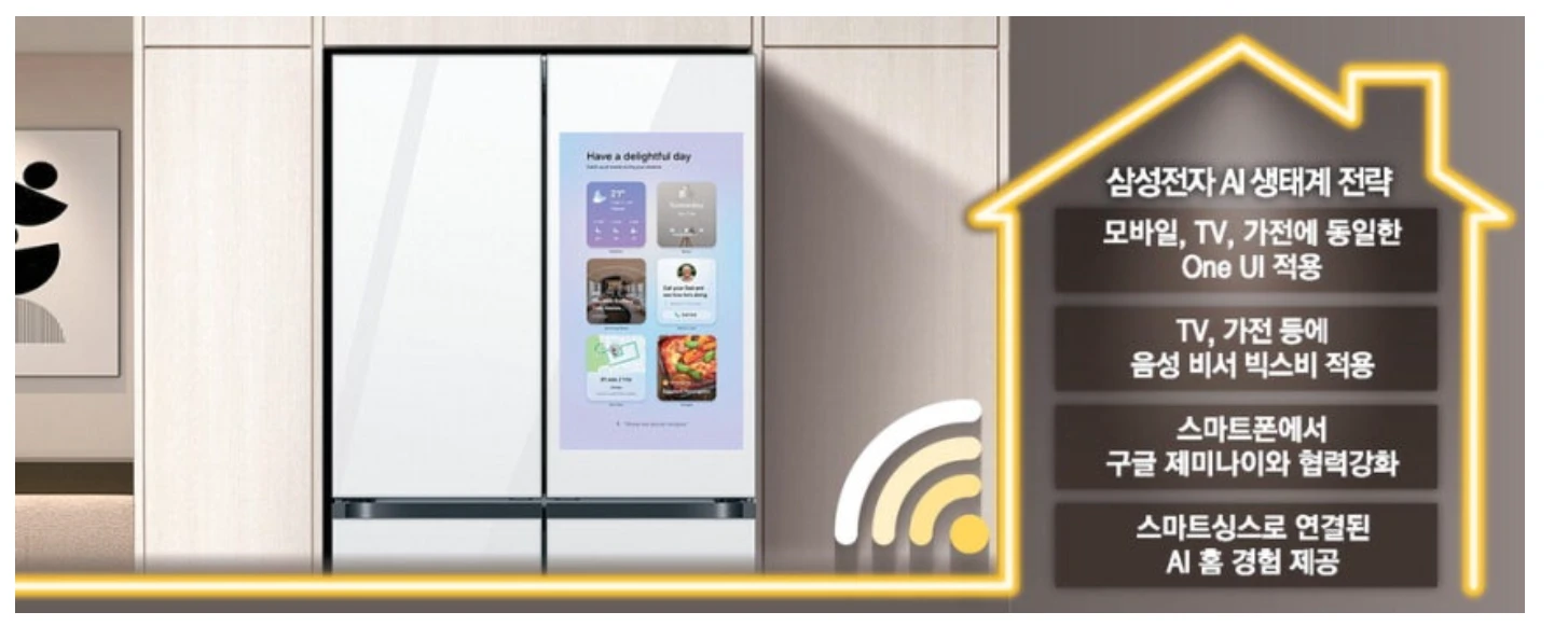 최근 삼성전자의 AI 생태계 전략은 삼성 제품을 중심으로 하는 개방과 협력으로 요약된다. 이날 삼성전자는 2024년 이후 출시된 AI 가전을 대상으로 One(원) UI를 적용하는 소프트웨어 업데이트를 실시한다고 밝혔다. One UI는 삼성 갤럭시 스마트폰 등 모바일 기기에 공통적으로 적용되는 UI였다. UI는 스마트폰과 사용자가 상호작용하는 모든 소프트웨어 경험을 말한다. 애플 아이폰과의 경쟁을 위해 삼성전자가 많은 투자를 한 영역이다.