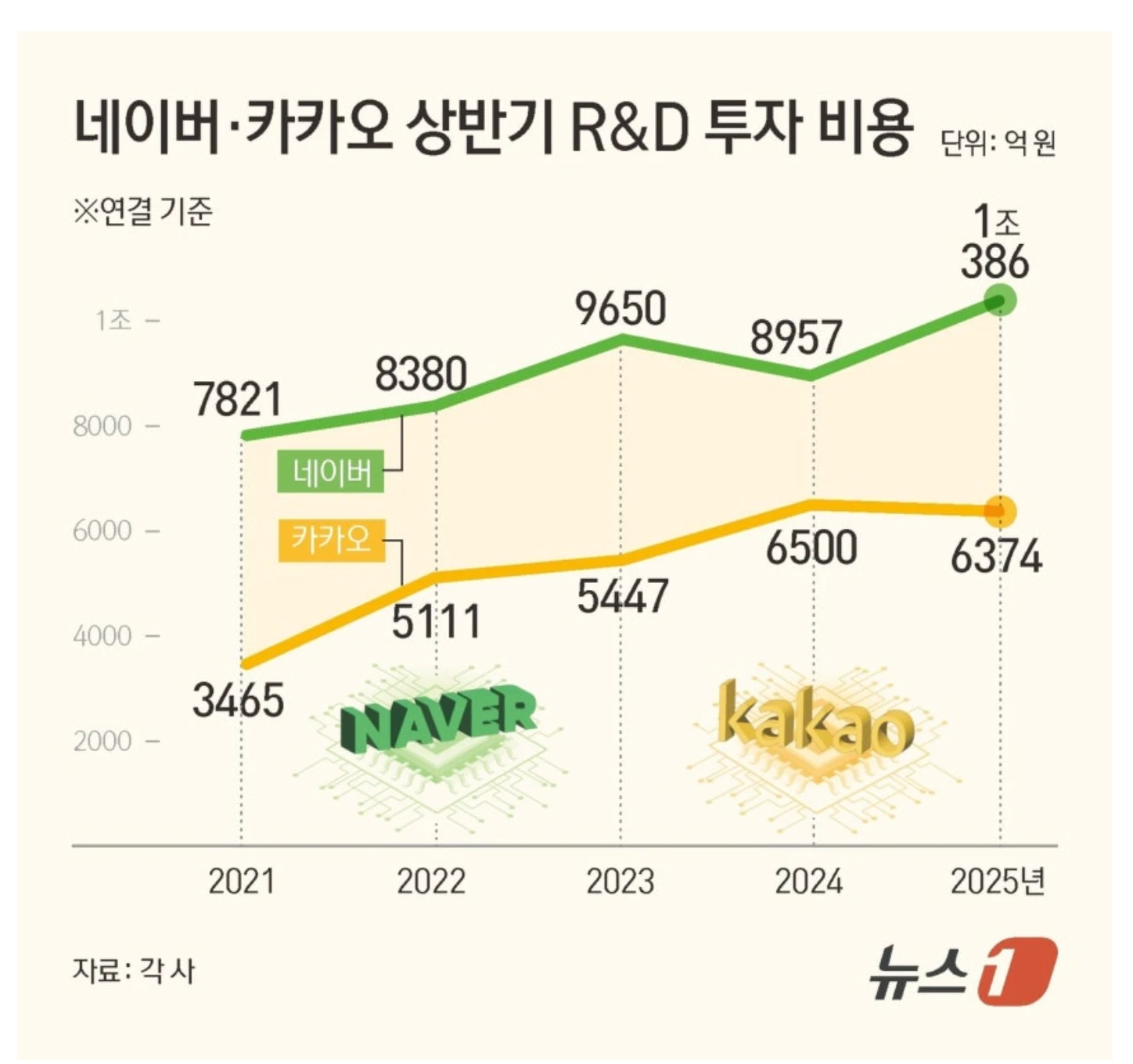 네이버는 연구개발(R&D) 비용으로 상반기 역대 최대 규모인 1조 원을 투입했고