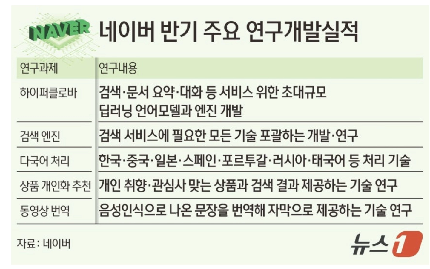 네이버는 이번 상반기 AI 중심의 연구개발 프로젝트를 진행해 왔다.